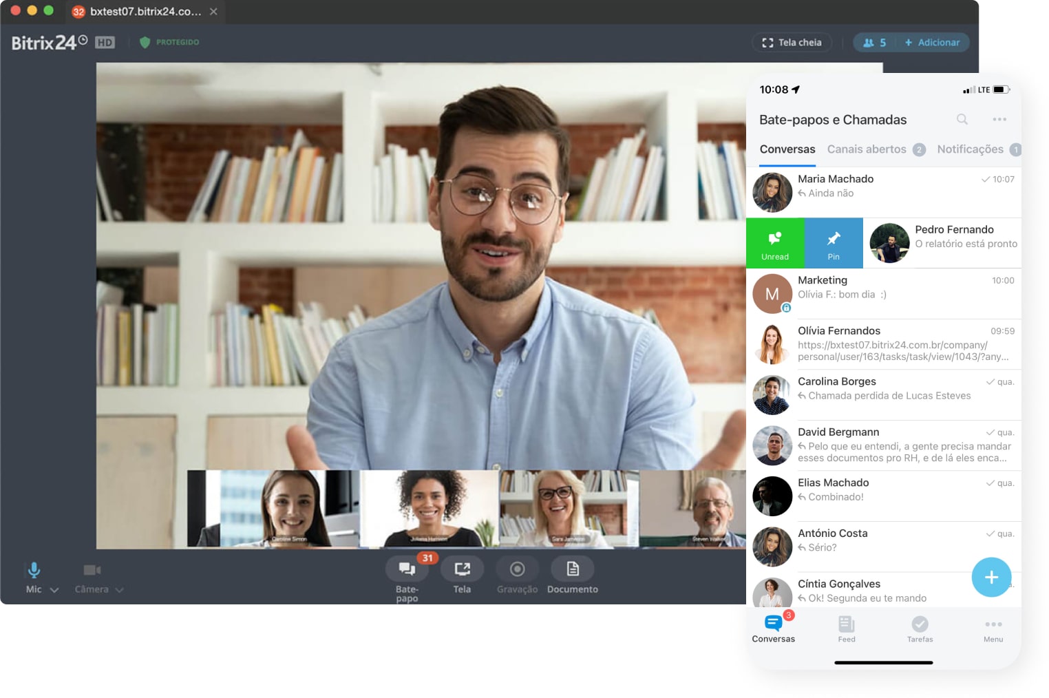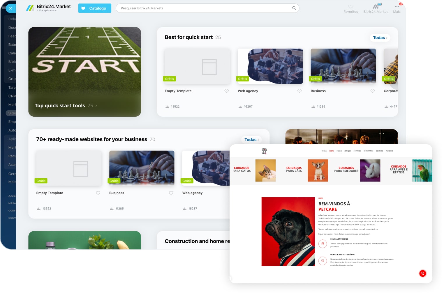 O Bitrix24 vem com dezenas de integrações disponíveis no nosso Bitrix24 Market. Você também pode criar seus próprios aplicativos usando nossa API REST.