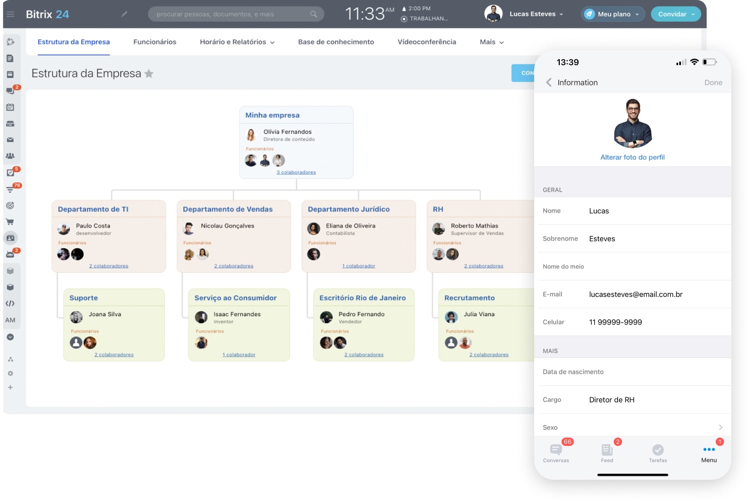 O Bitrix24 oferece uma ampla gama de recursos de comunicação, incluindo bate-papo, videoconferência, ferramentas de trabalho em equipe e compartilhamento de documentos além da gestão de RH e todas as ferramentas são integradas de forma nativa. Além disso, o Bitrix24 oferece uma versão gratuita com um conjunto básico de recursos, permitindo que pequenas empresas e equipes experimentem o software antes de investirem em planos pagos.