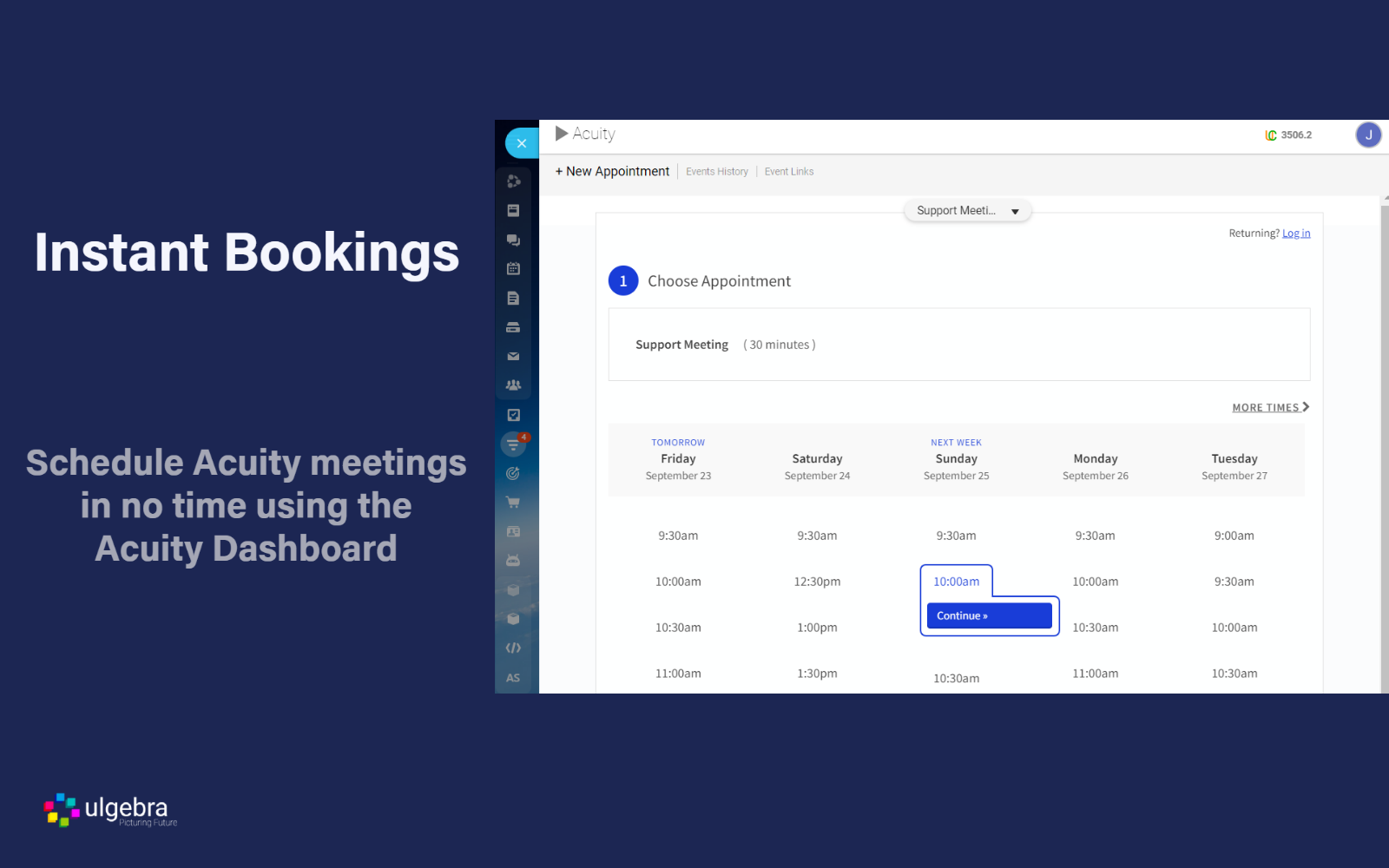 - Links de reserva do Acuity
