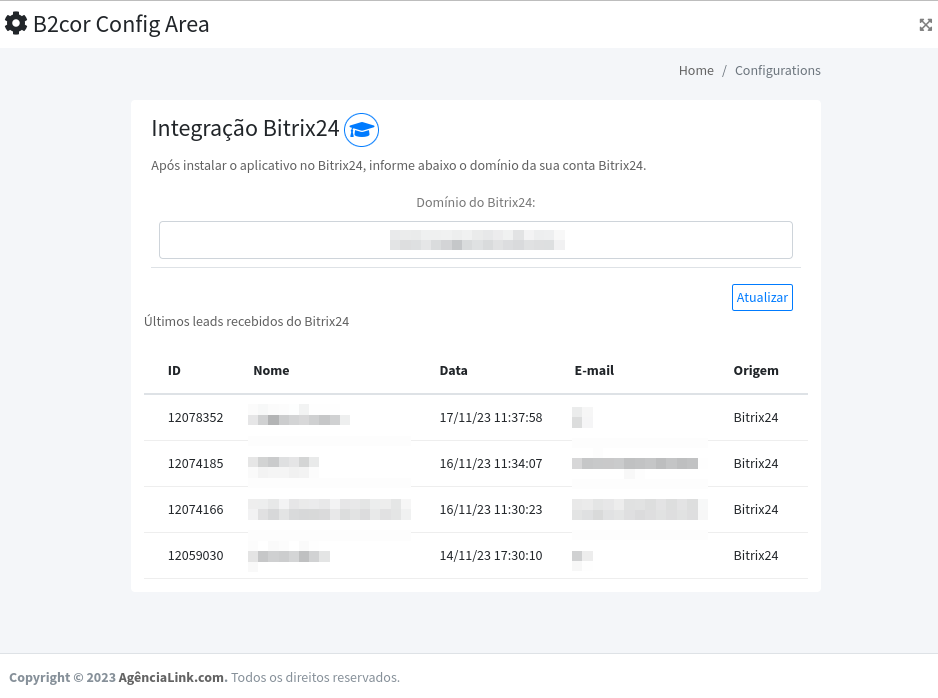 Os leads são exportados quando são cadastrados ou alterados no Bitrix24.