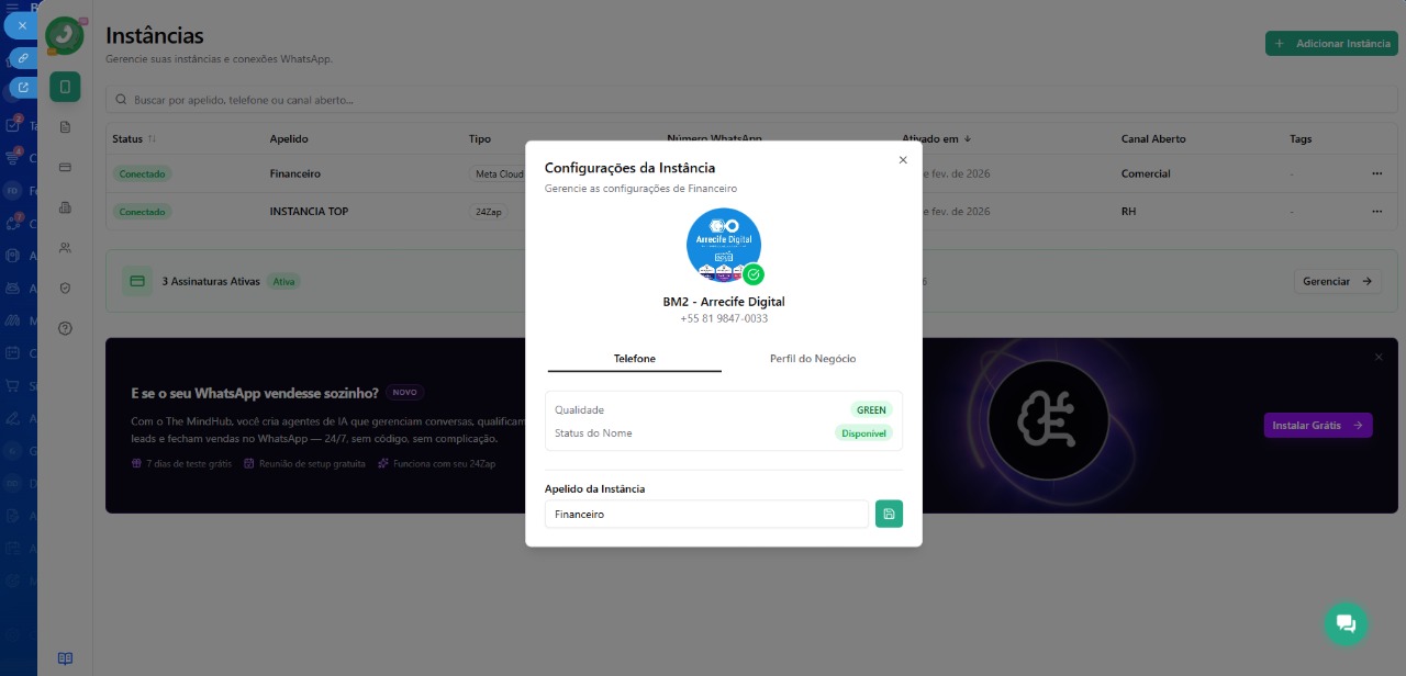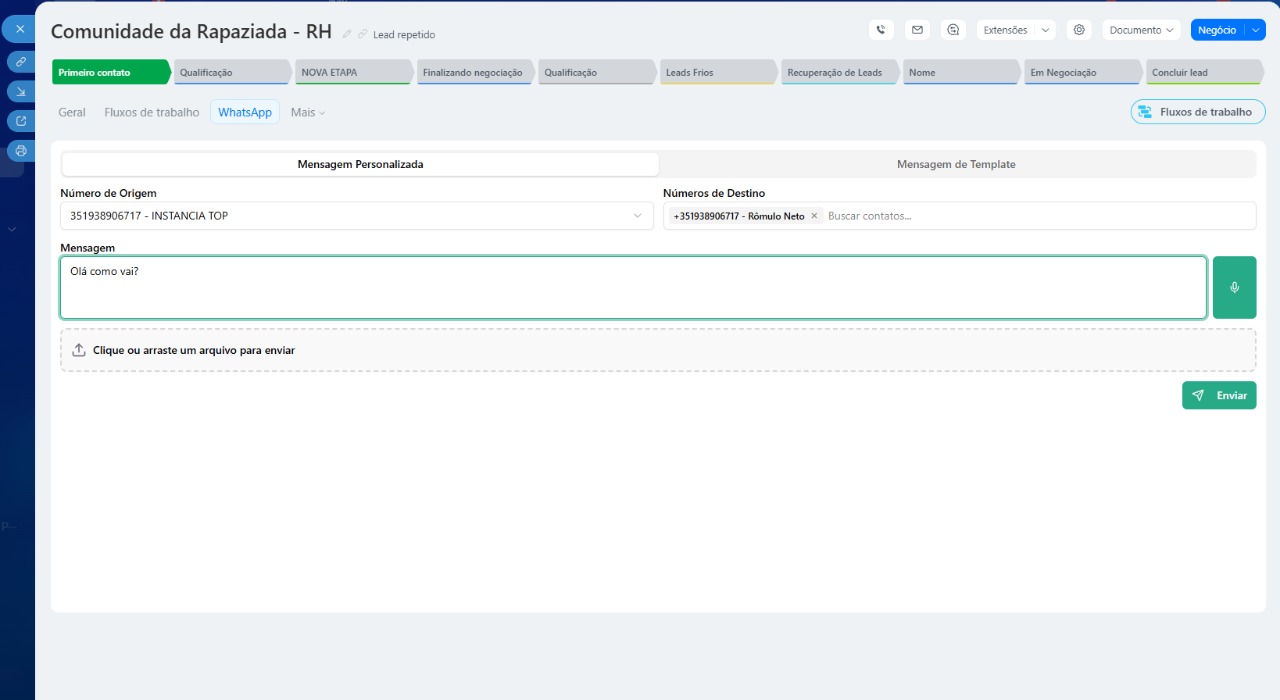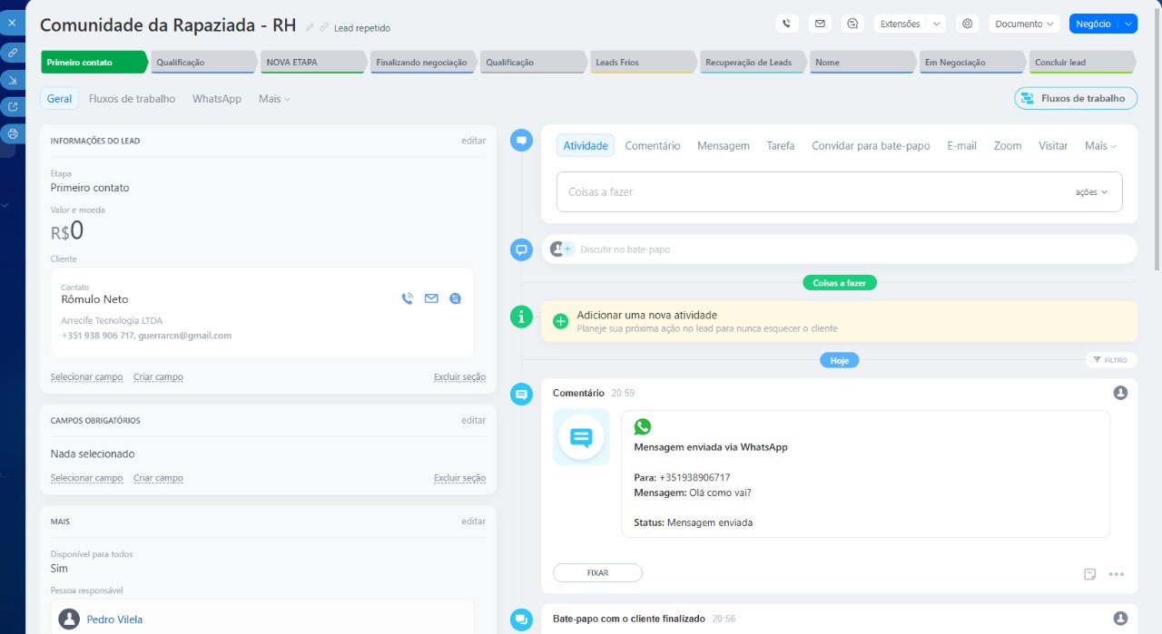 Sincronização com o CRM: registre automaticamente conversas nos cards do CRM.