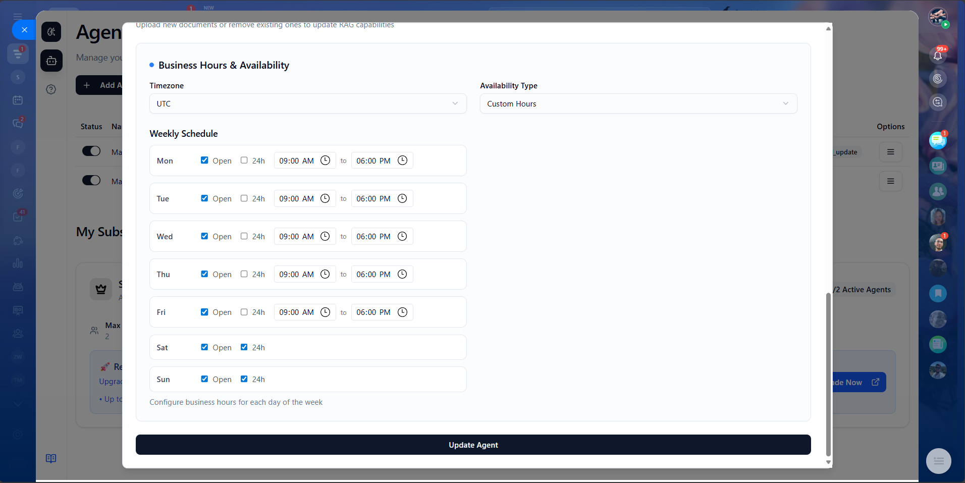 O MindHub – AI Agent Maker permite criar “funcionários perfeitos” que atuam como bots totalmente integrados aos Canais Abertos. Esses agentes podem receber clientes, acessar e atualizar registros do CRM, mover negócios e executar tarefas — tudo sem intervenção humana.
