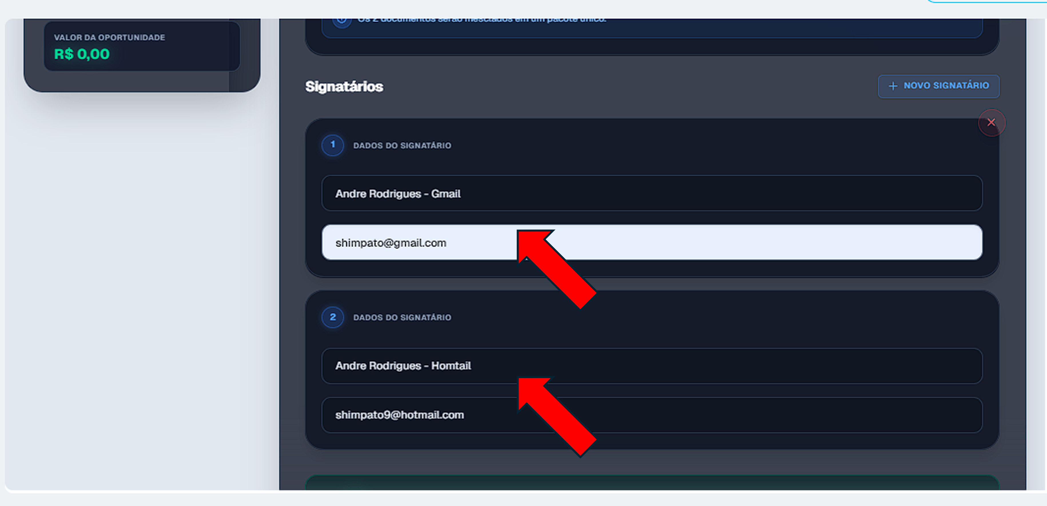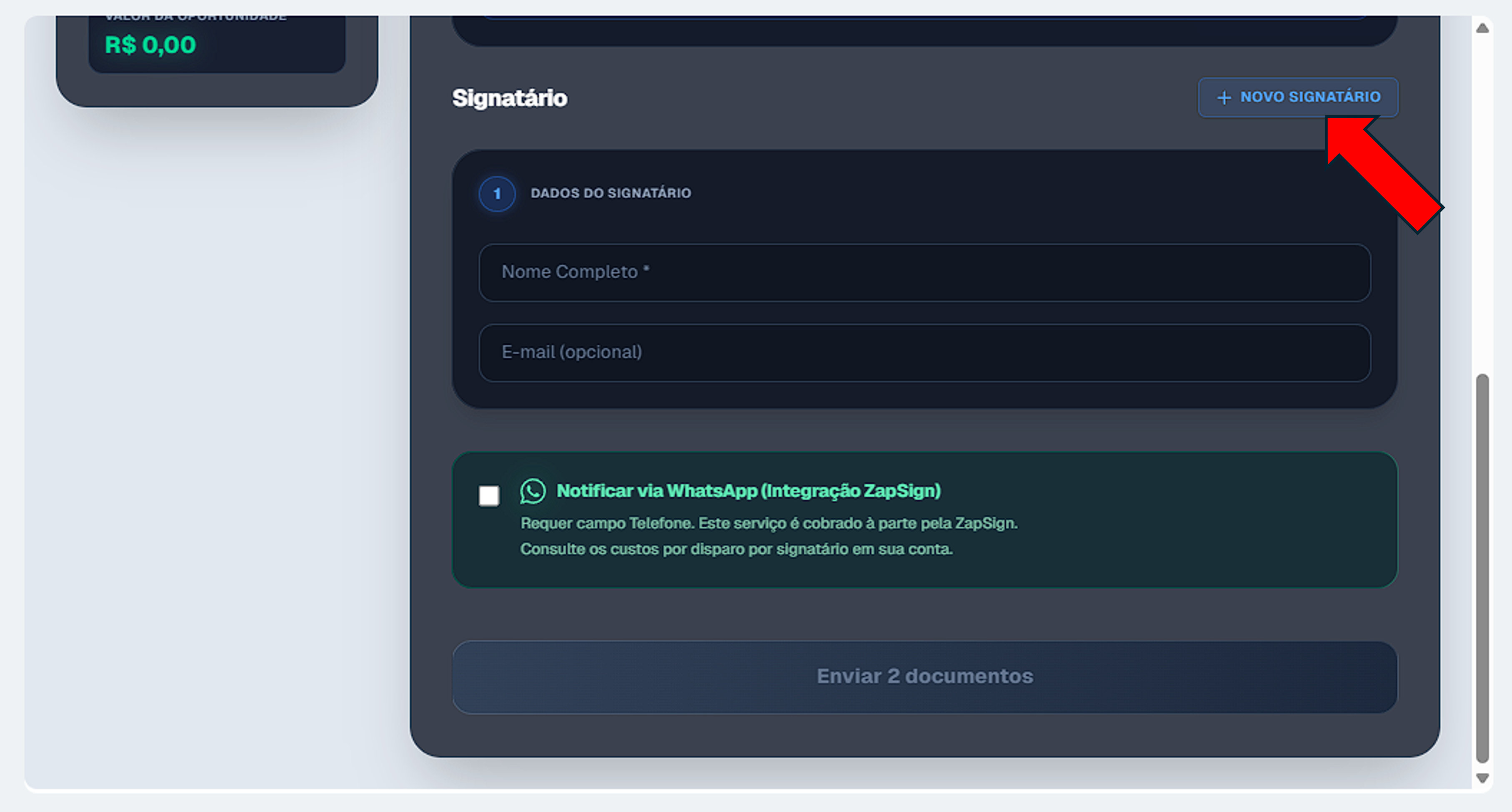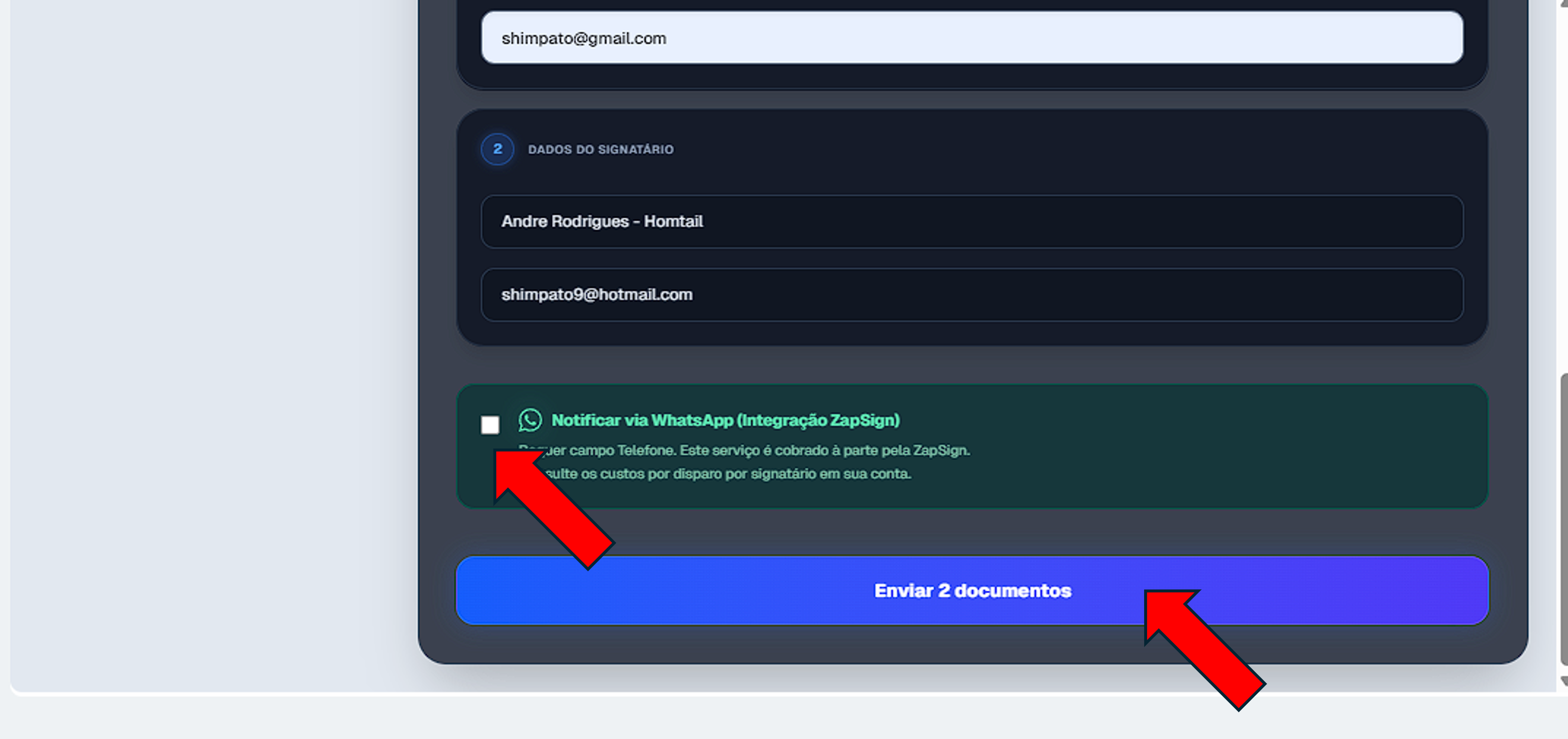 - Multisignatários: Adicione vários assinantes e envie notificações via E-mail ou WhatsApp.