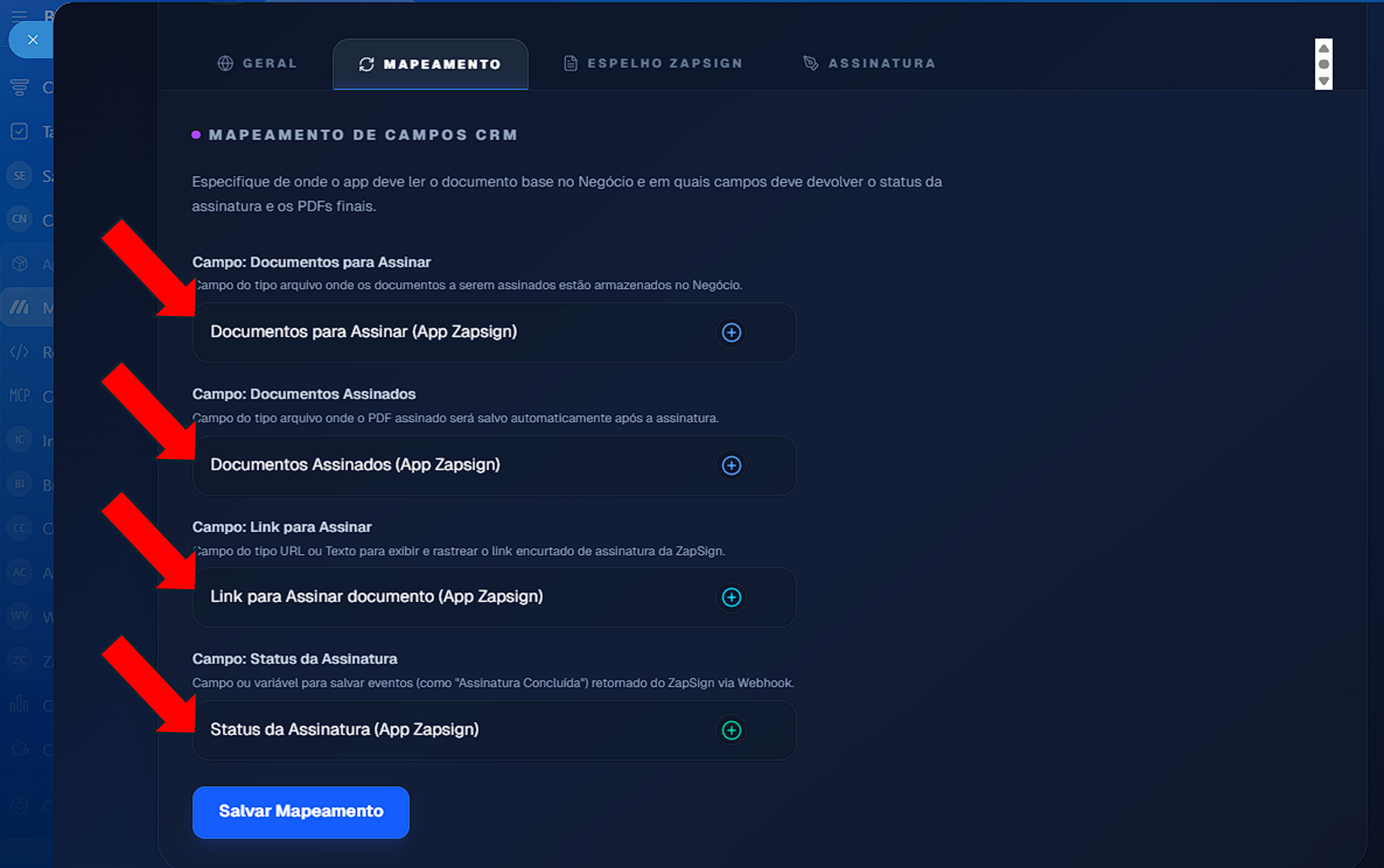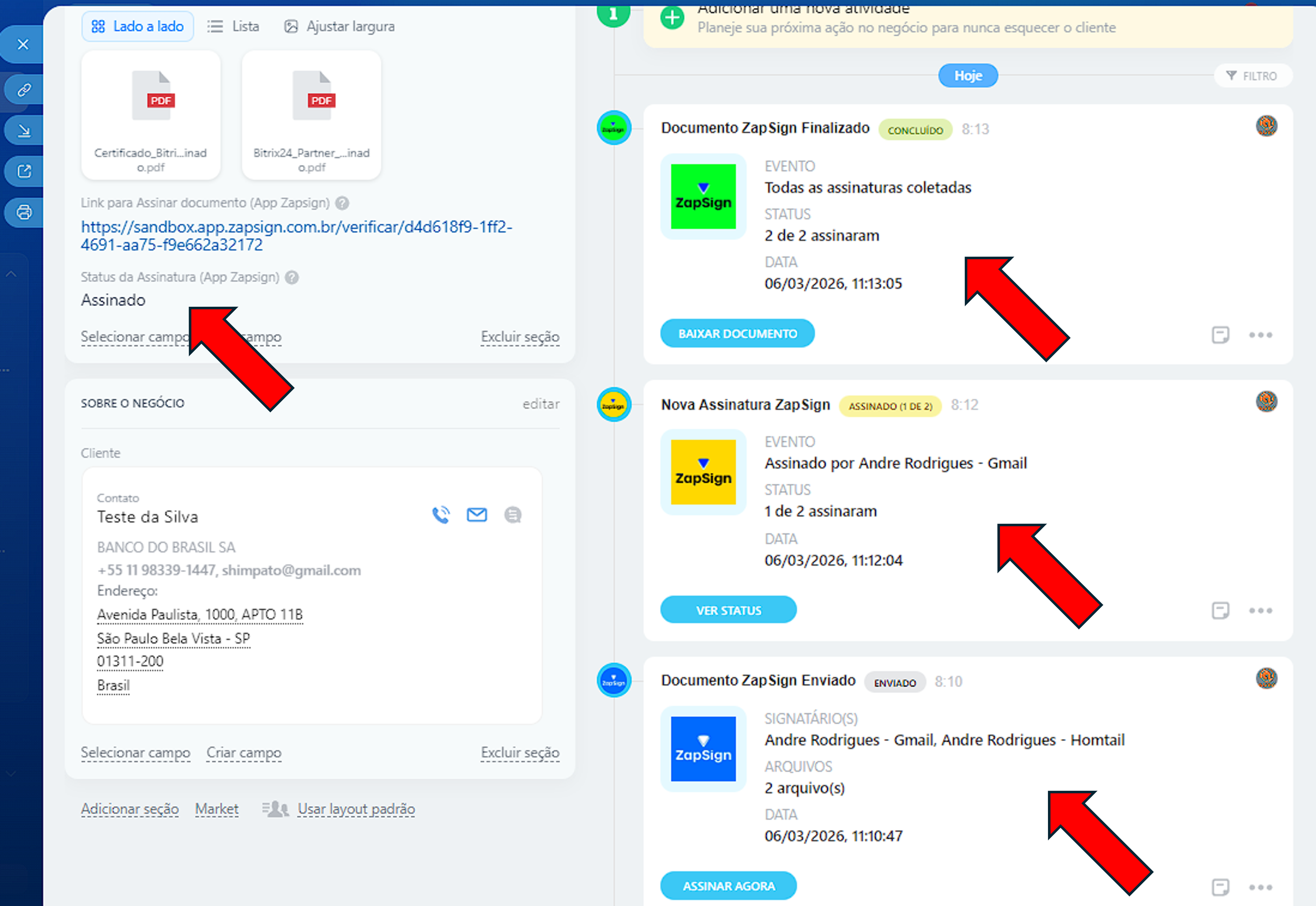 - Sincronização em Tempo Real: Receba o documento assinado e a folha de assinaturas automaticamente de volta no campo do CRM.