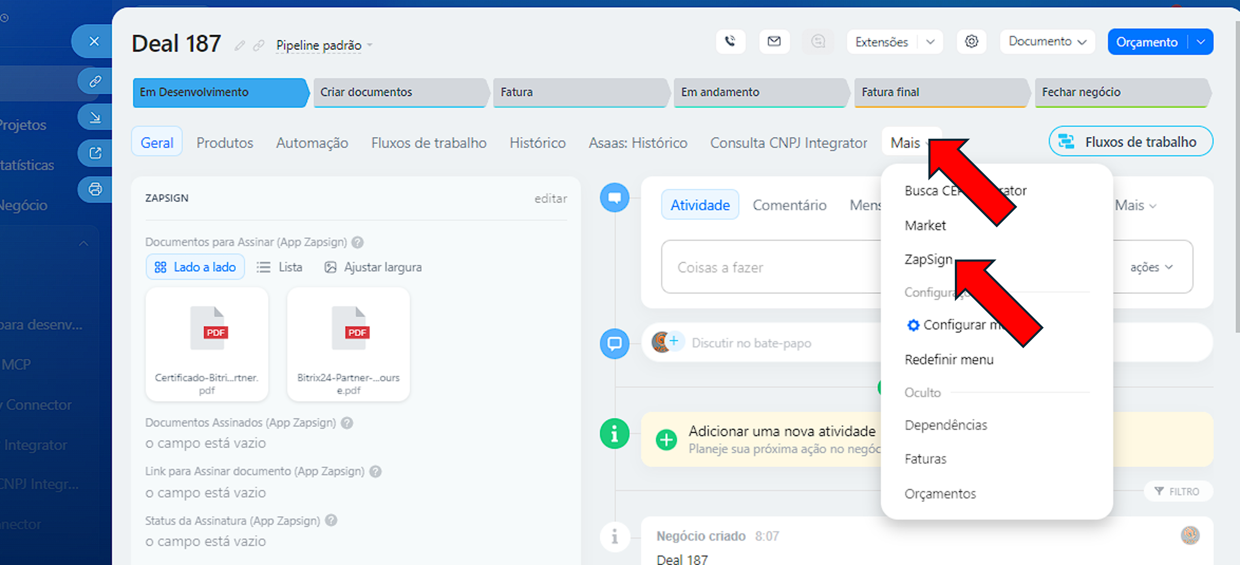 Crie e envie contratos pela ZapSign no Bitrix24.