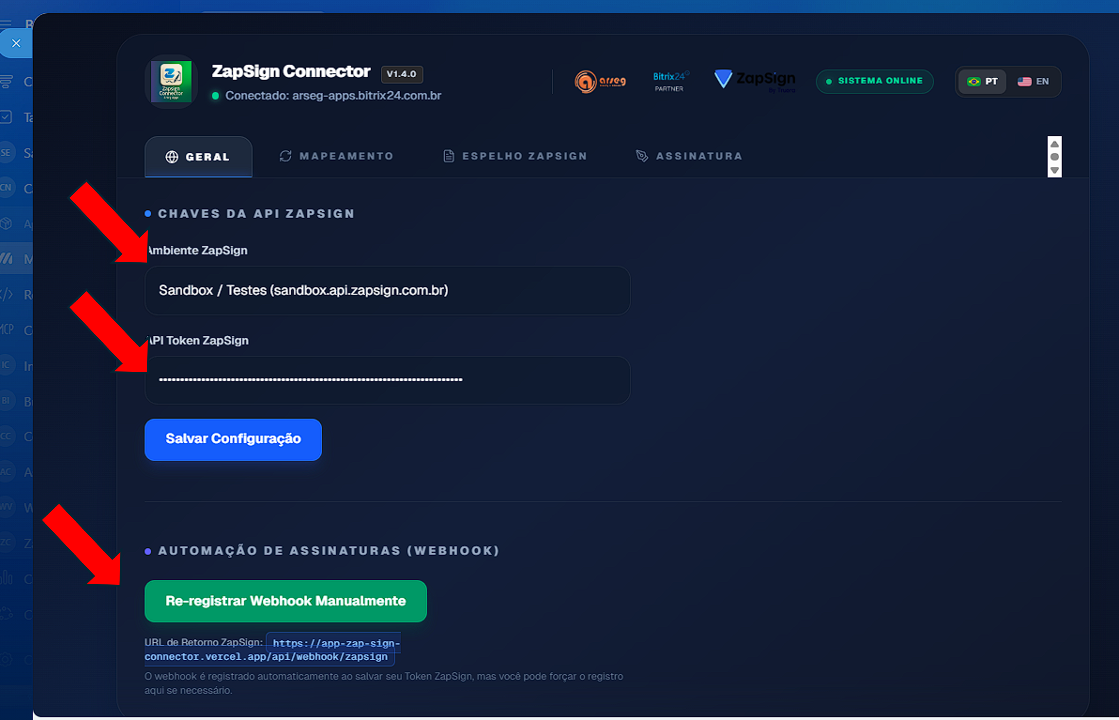 - Requer uma conta ativa na ZapSign com acesso à API (Token).