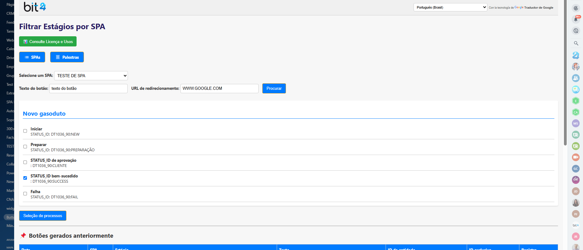 Automatize seu fluxo de trabalho com botões para mover SPAs entre etapas.