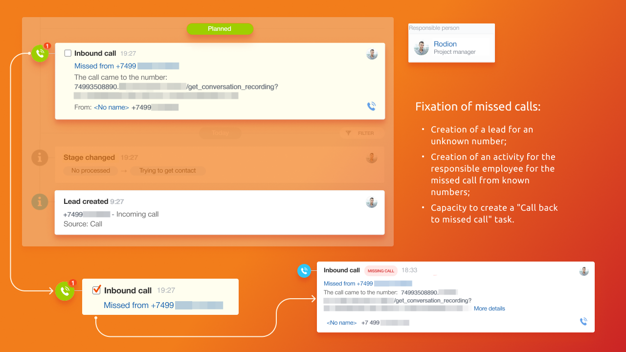 - Criação obrigatória de leads/contatos para chamadas recebidas e efetuadas