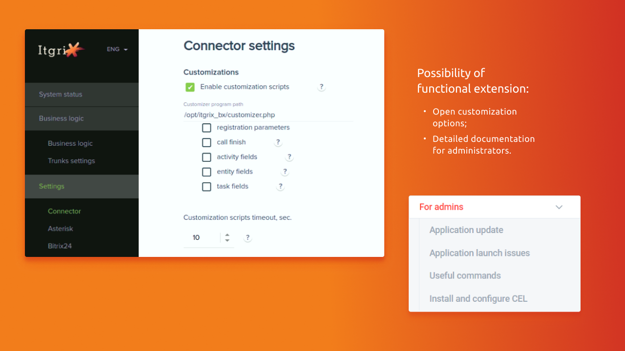 - Sistema flexível com capacidade de customização para suas tarefas (11 pontos de customização na lógica de chamada)