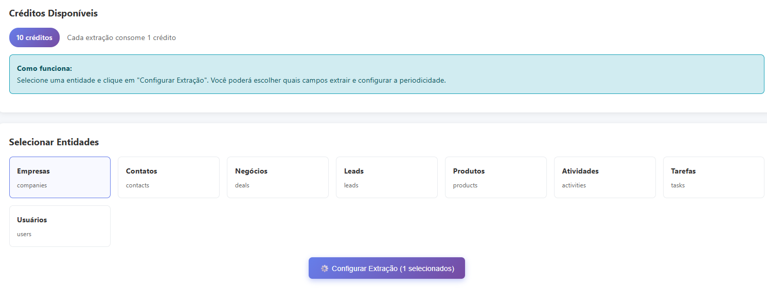 O app extrai automaticamente seus dados de Leads, Negócios, Contatos, Empresas e Tarefas do Bitrix24 e os disponibiliza em um banco de dados estruturado, pronto para conexão.