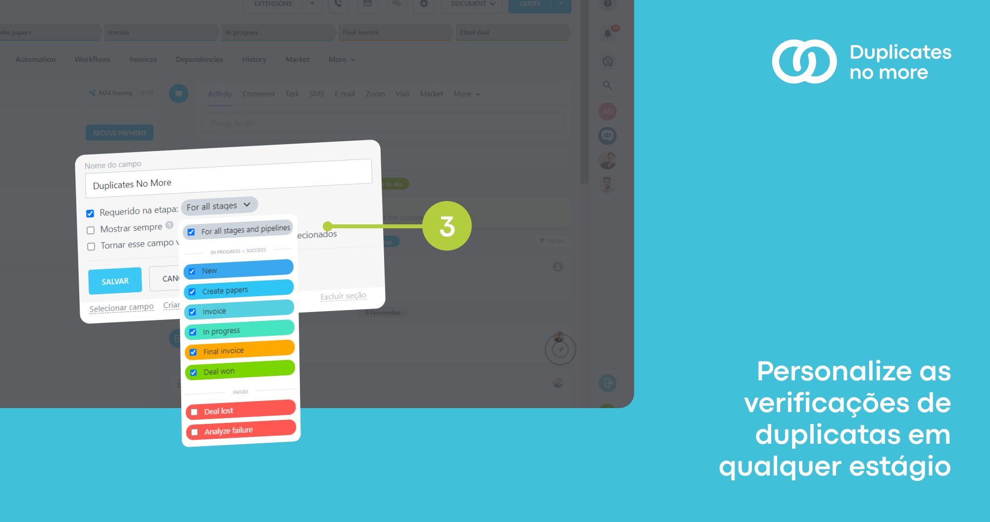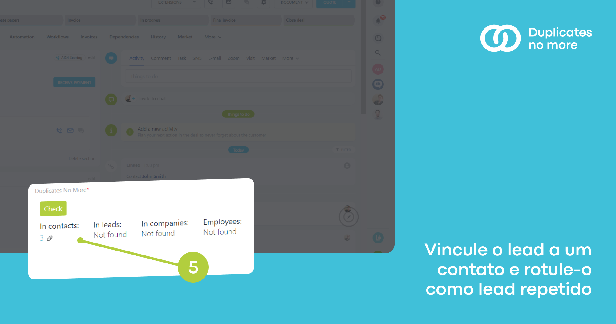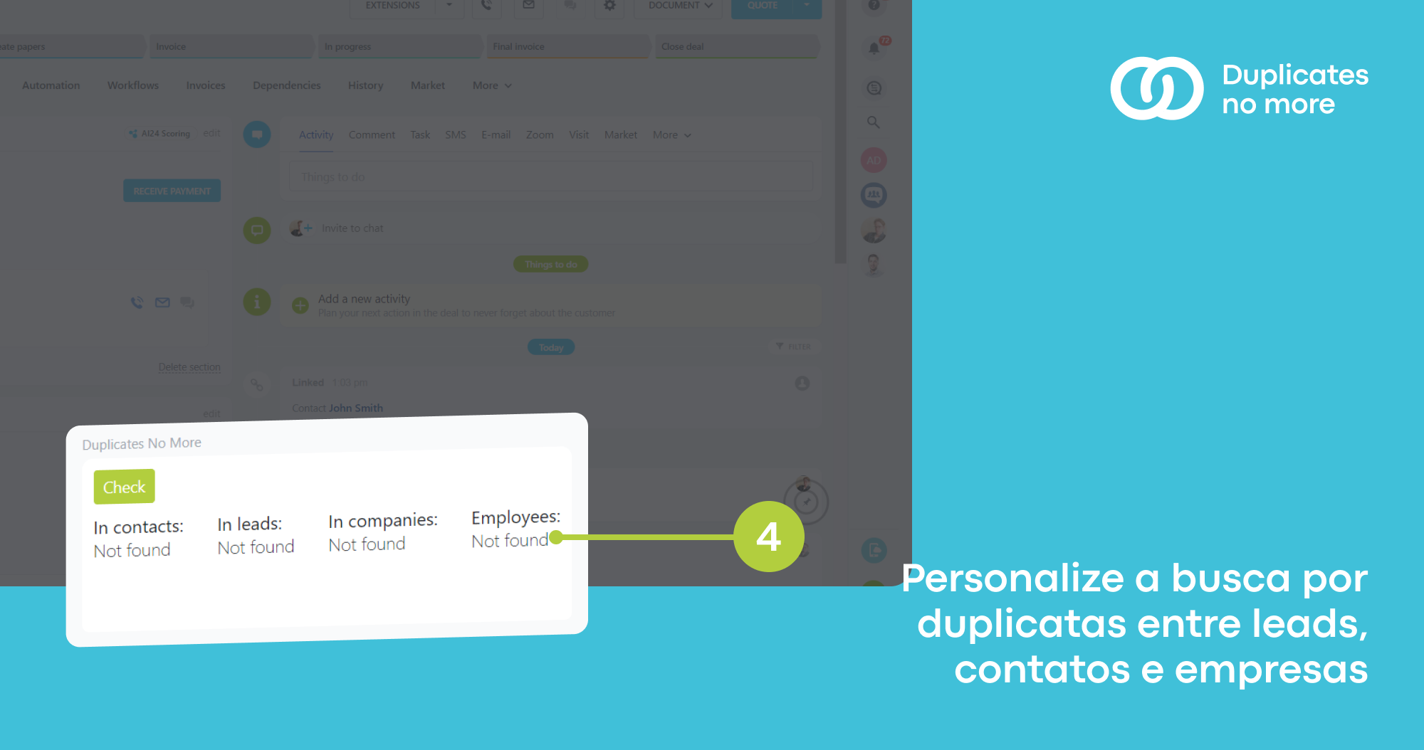 “Duplicates no more” é uma maneira confiável de proteger seu CRM de leads, negócios, etc. duplicados.