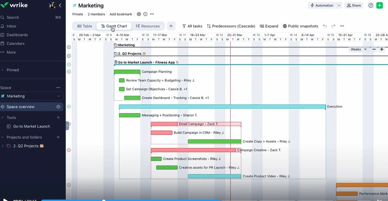 O Wrike é indicado para projetos de maior porte e complexidade. Sua robustez é evidenciada por recursos avançados que facilitam o planejamento e a execução de tarefas. O Wrike disponibiliza gráficos de Gantt aprimorados, para que seja feito o acompanhamento visual do progresso das atividades, contribuindo para um planejamento mais eficaz. A plataforma também integra automações que otimizam fluxos de trabalho, reduzindo a necessidade de intervenções manuais e aumentando a produtividade. Com essas ferramentas, o Wrike pode ser considerado um ótimo software de otimização de orçamento e recursos, atendendo às demandas de organizações que buscam eficiência e controle em seus projetos.