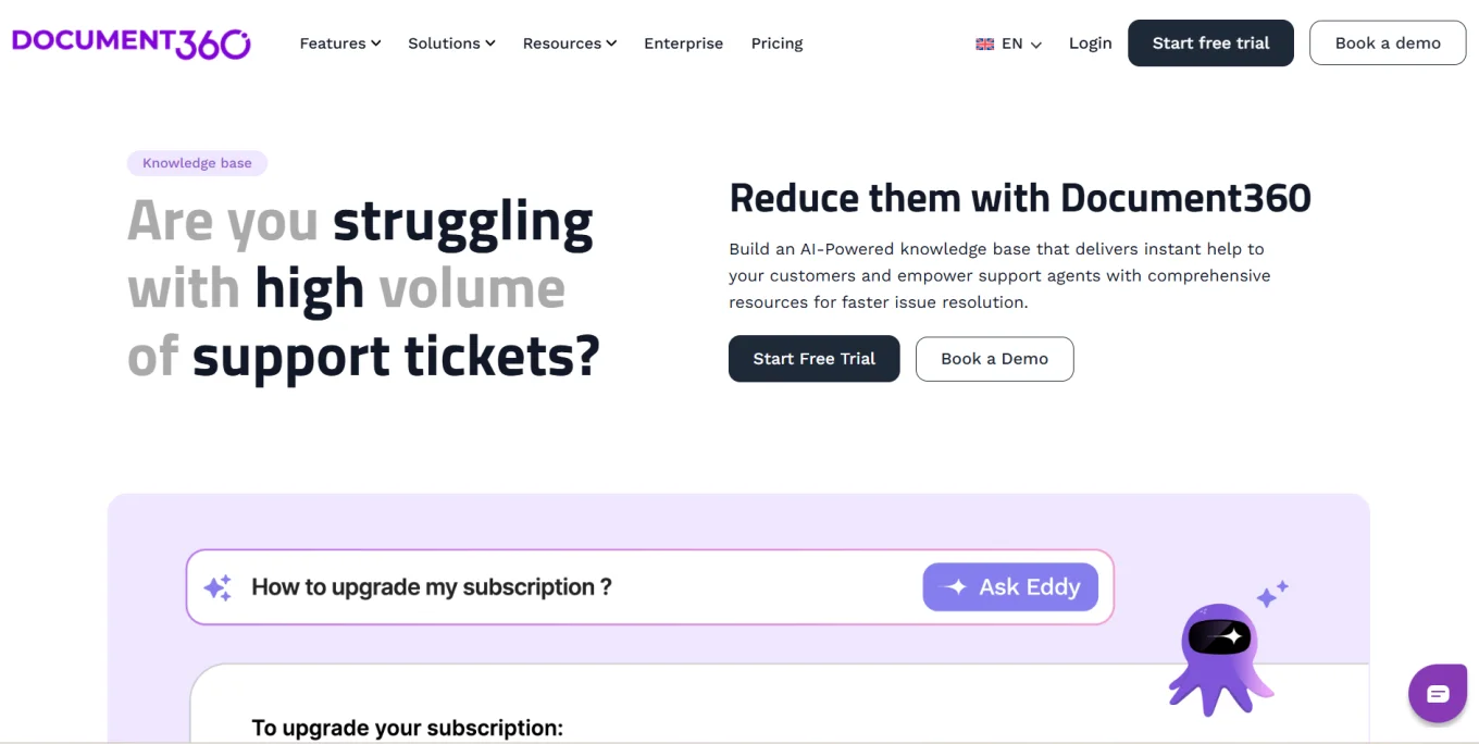 O Document360 é altamente confiável na criação de bases de conhecimento de autoatendimento, com ênfase em soluções de alta escalabilidade. A integração de inteligência artificial transforma a experiência de produção e busca por informações, proporcionando respostas instantâneas e precisas, em estilo similar ao ChatGPT. Essa funcionalidade melhora a performance e também acelera a resolução de problemas, otimizando o tempo dos usuários e das equipes.