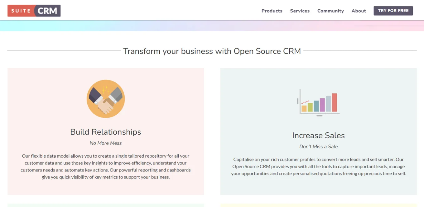 Plataformas baseadas em open source como Suite CRM não têm custos aos usuários. Portanto, é possível usar de forma gratuita sem ter nenhum limite nos seus recursos. Porém, vale destacar que este tipo de CRM grátis em 2024 exige uma instalação diferenciada que poucos profissionais sabem fazer.