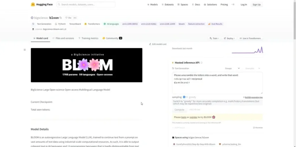 O Bloom é uma IA feita em código aberto, ou seja, qualquer pessoa pode contribuir com seu código-fonte e acrescentar novos recursos. Graças a isso, a ferramenta é totalmente gratuita, mas com um porém: torna-se necessário ter um certo conhecimento em linguagens de programação para explorar suas funções.