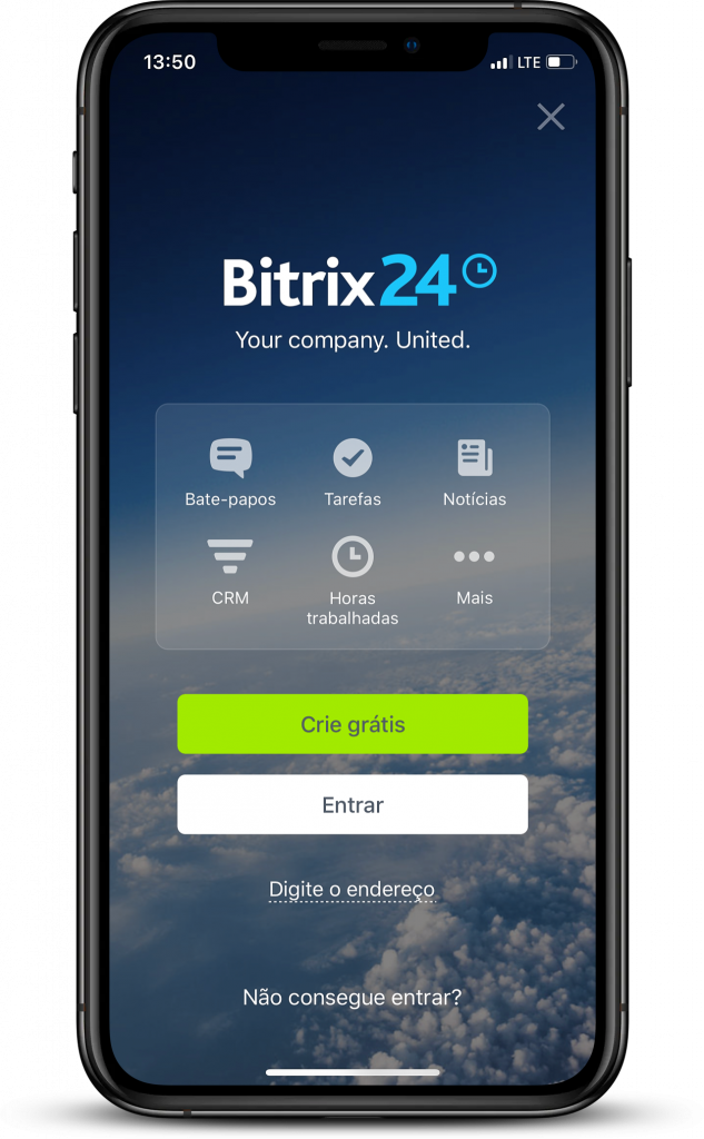 Agora você pode criar uma nova conta Bitrix24 diretamente do aplicativo móvel.