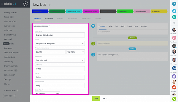 O novo formulário deslizante de registro do CRM finalmente chegou! Ele ainda não foi aplicado ao Bitrix24 (está na fase beta), mas você pode ativá-lo na sua conta em