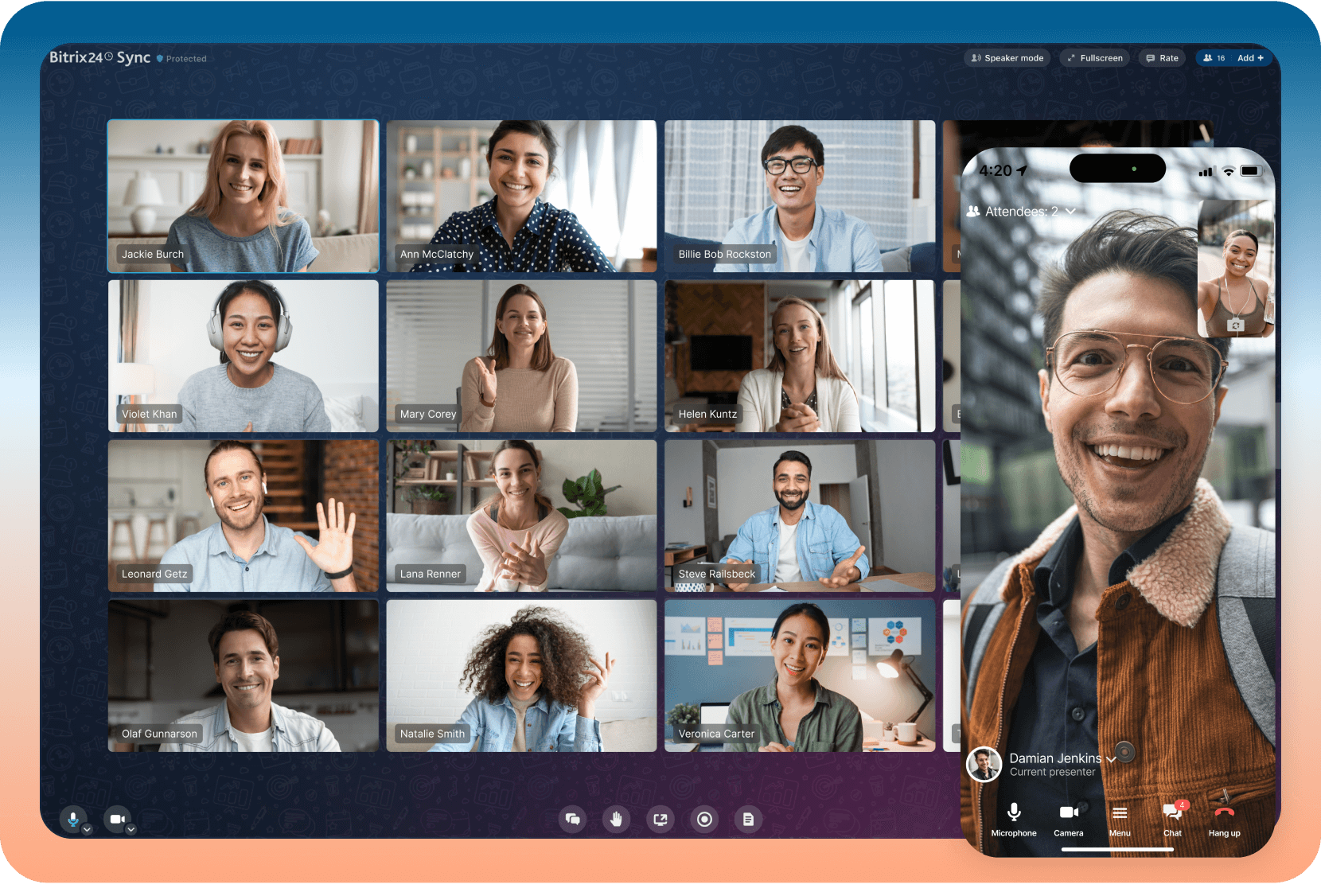 Conheça a versão nova, atualizada e renovada do nosso recurso de videochamada, agora conhecido como Bitrix24 Sync. Ele está lá para manter a empresa unida e ajudar você a colaborar – nós apenas demos a ele uma nova aparência.