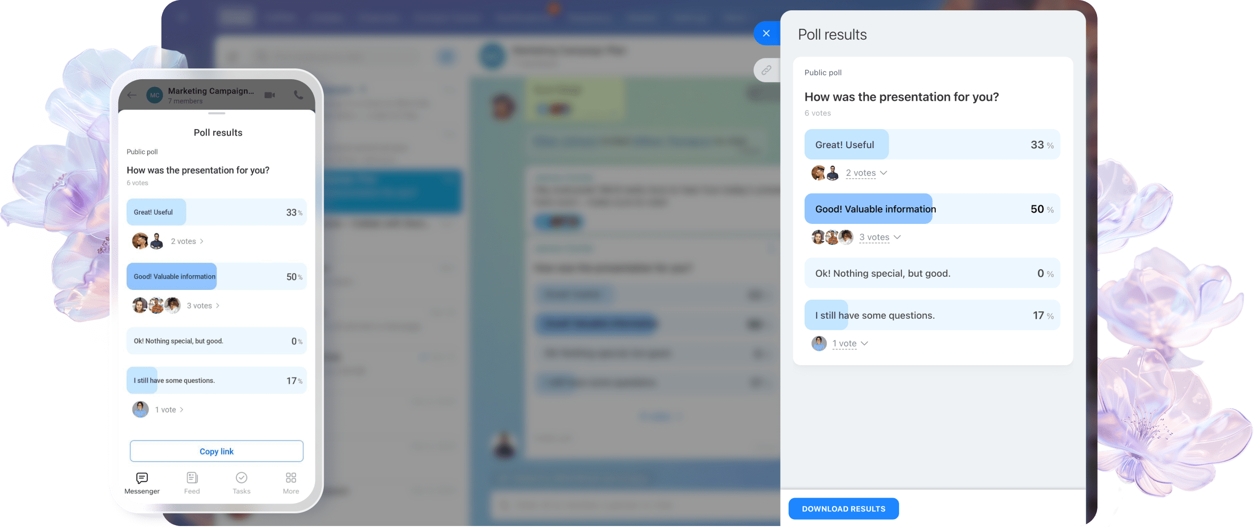 Precisa da opinião da sua equipe sobre algo? Em vez de uma longa discussão, agora você pode criar e lançar uma enquete, coletar resultados e até exportá-los para uma planilha do Excel.