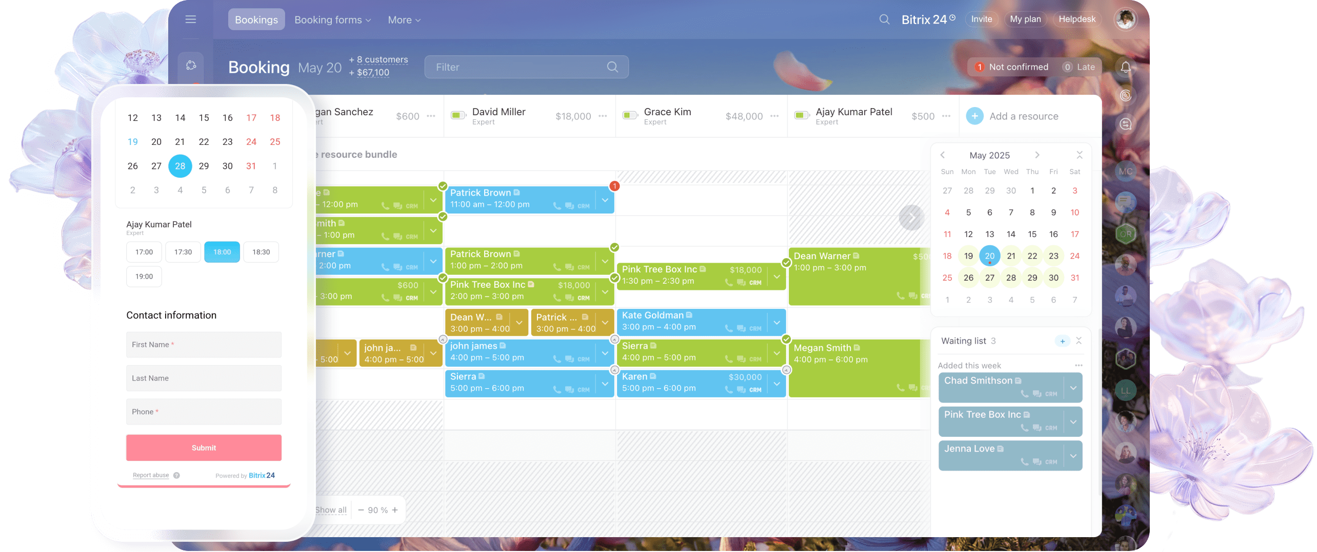 Cada reserva é registrada automaticamente no seu CRM, incluindo informações do cliente, serviço selecionado e especialista atribuído. Não é necessário inserir dados manualmente – tudo permanece sincronizado.