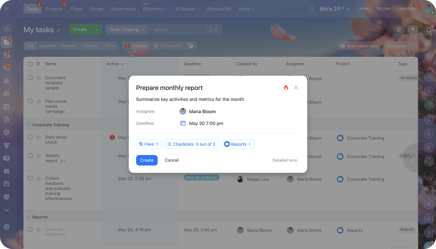 Dê as boas-vindas a um Bitrix24 mais leve, limpo e intuitivo. Nossa interface redesenhada é mais agradável aos olhos e ao seu fluxo de trabalho. Alterne facilmente entre abas, personalize seus menus e desfrute de um ambiente de trabalho mais fluido, responsivo e com a sensação ideal.