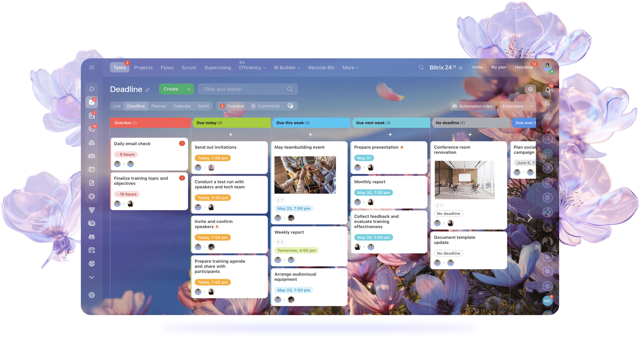 O novo Bitrix24 tem como objetivo criar mais espaço para o seu negócio crescer e prosperar. Seja trabalhando sozinho ou liderando uma grande equipe, esta atualização foi projetada para oferecer a você o máximo de clareza, velocidade e controle. Vamos ver o que está crescendo no jardim do Bitrix24.