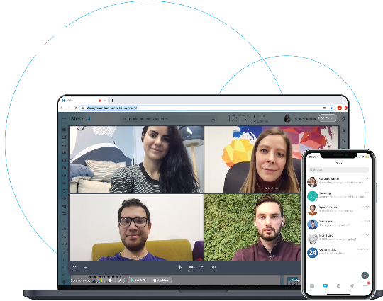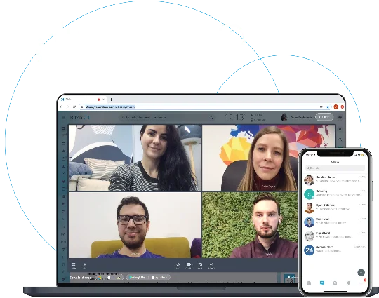 Mantenha toda a empresa conectada, no escritório ou em casa: envie mensagens, faça chamadas de vídeo, crie bate-papos públicos e privados e organize reuniões de equipe on-line por meio de videoconferências.