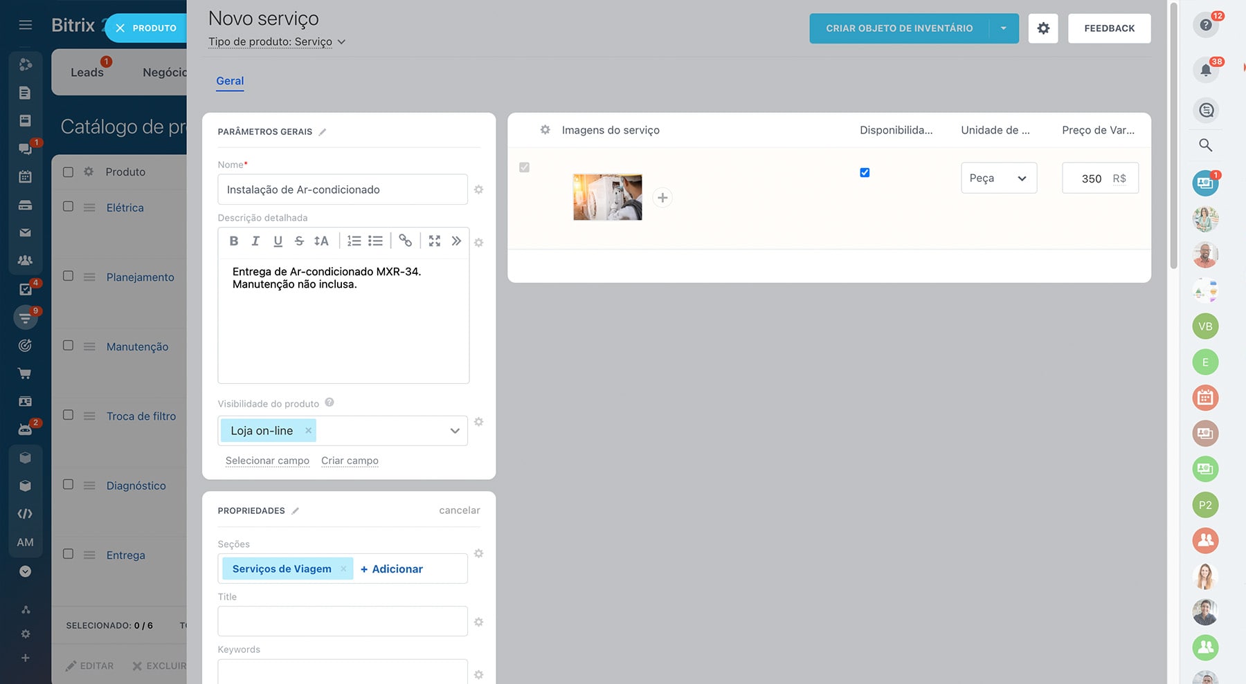 Agora, você pode separar serviços de produtos em seu Catálogo, facilitando a navegação e o gerenciamento. O mesmo vale para documentos em Negócios – você pode ter um conjunto separado de documentos para produtos e outro para serviços.