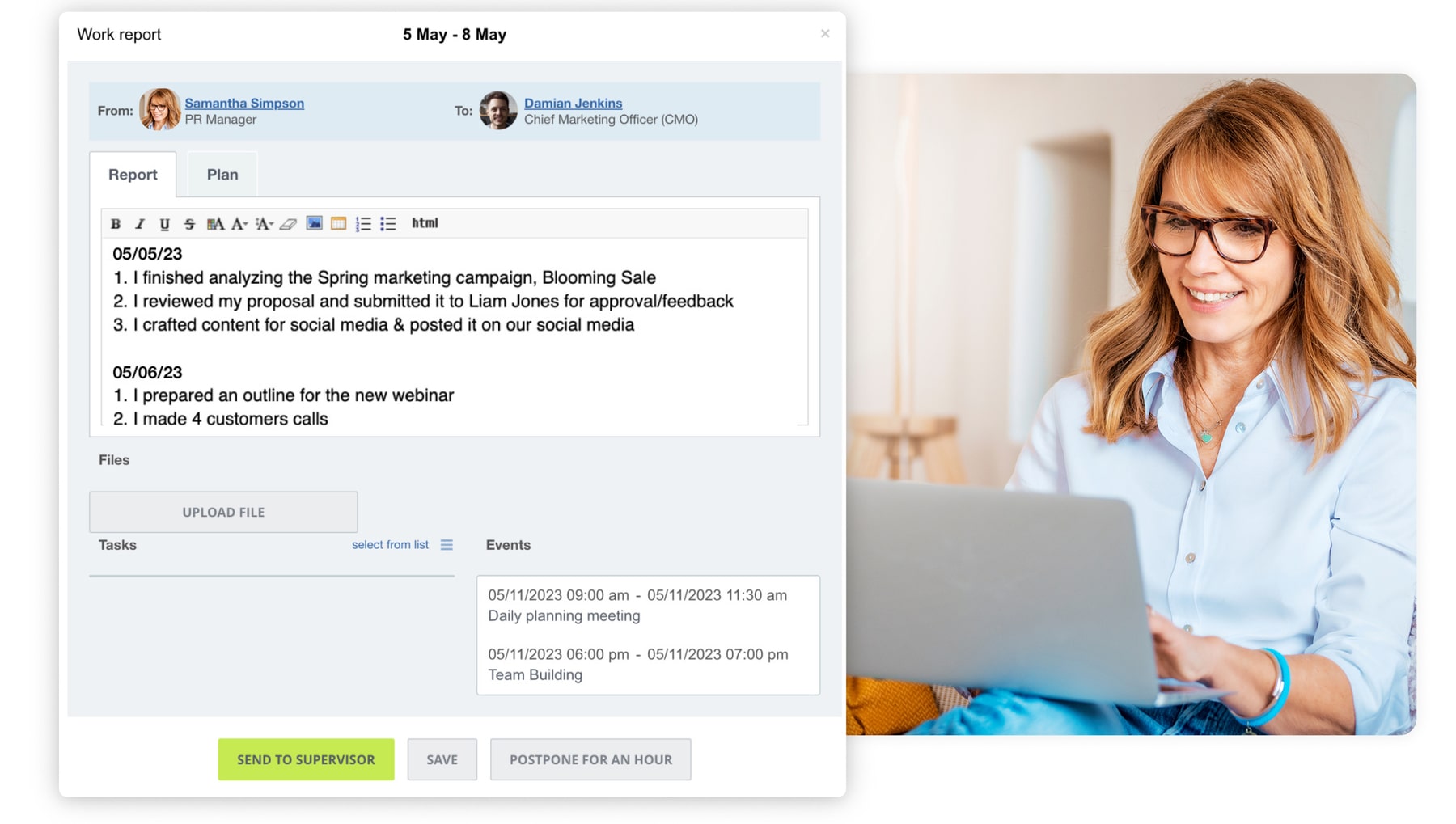 Ofereça suporte para facilitar o trabalho da sua equipe de RH. Acompanhe os horários e os benefícios dos funcionários, faça relatórios, crie faturas e muito mais.