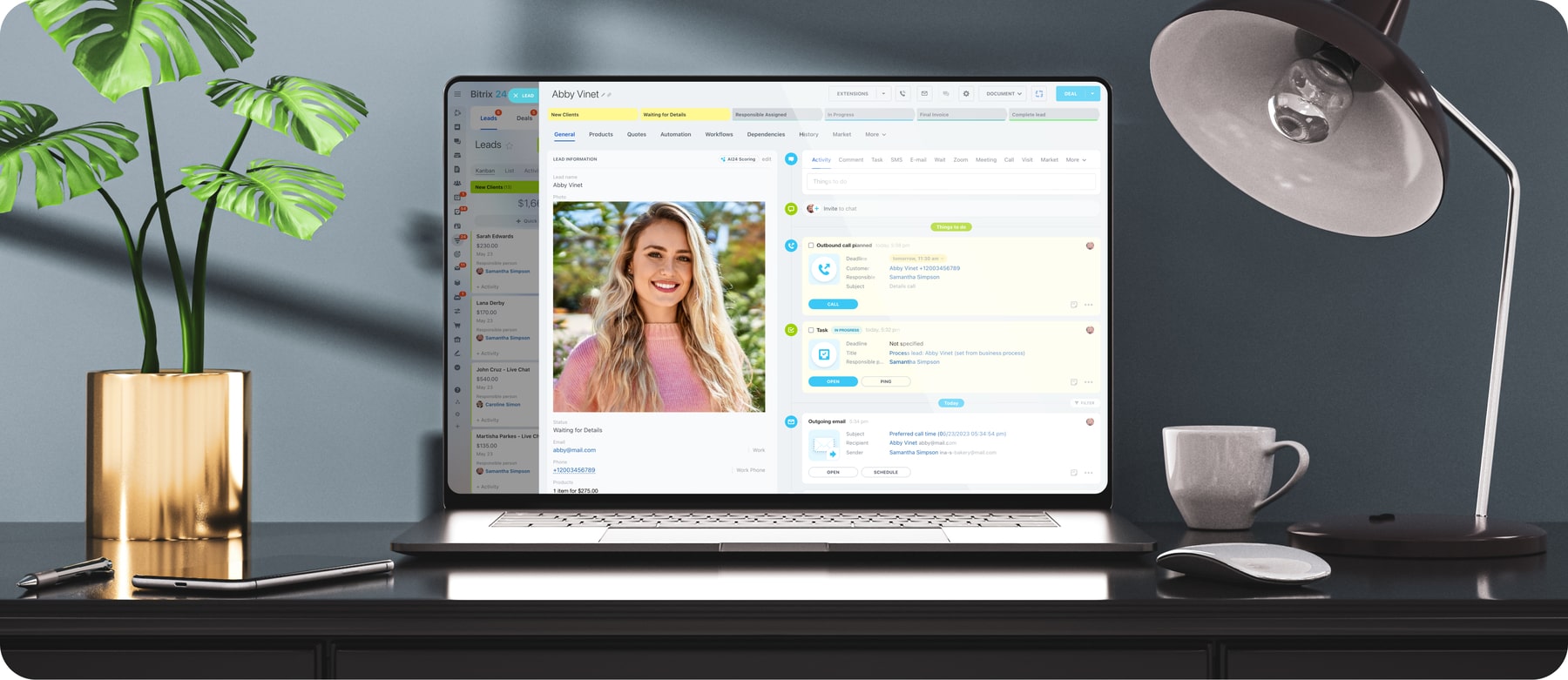 Gerencie melhor o relacionamento com os clientes com anotações em tarefas, lembretes, comunicações aprimoradas e ferramentas de agendamento de compromissos no Bitrix24.