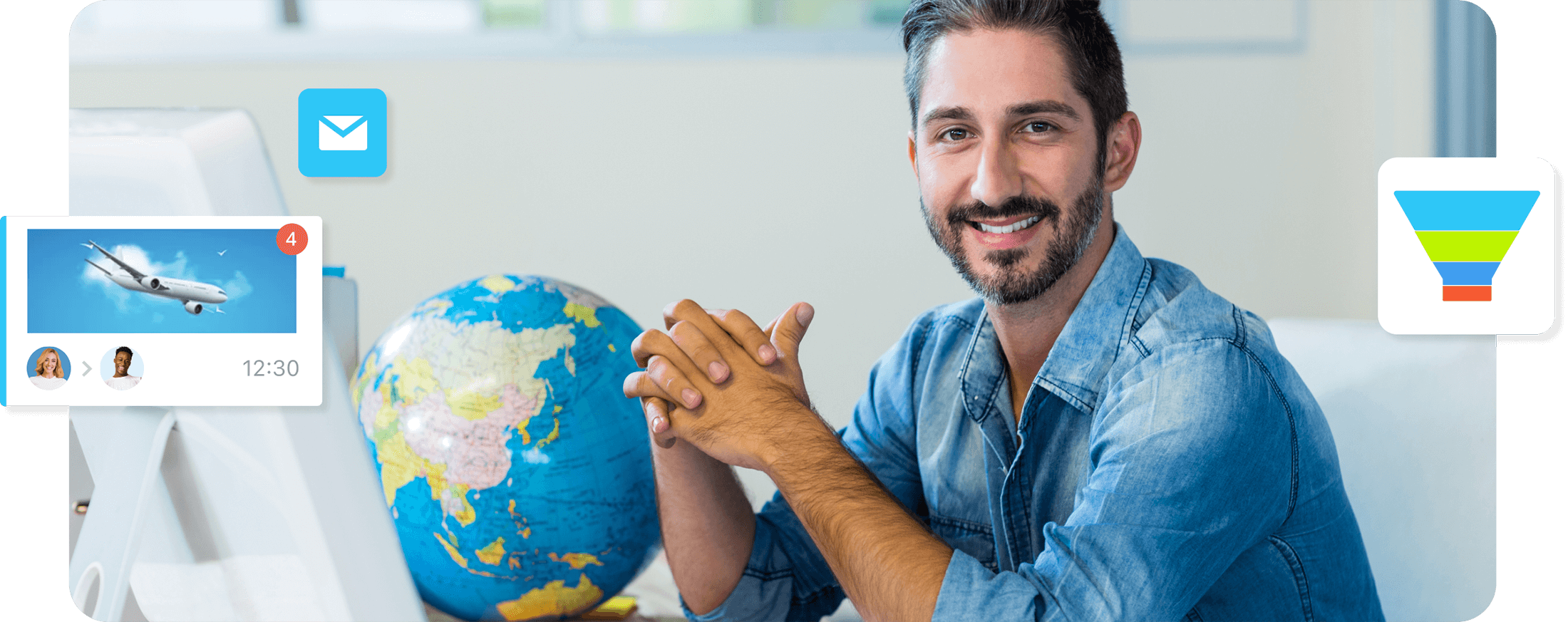 Não consegue organizar as viagens, voos e cruzeiros dos seus clientes nos mínimos detalhes? O fluxo de trabalho é tão intenso que os seus agentes começaram a perder vantagem? Seu funil de vendas está furado? O Bitrix24 tem a solução perfeita para todos os seus problemas com gerenciamento de viagens. Colete, armazene e gerencie os dados dos seus clientes e fornecedores, crie relacionamentos de longo prazo, automatize as tarefas, incentive a produtividade e agilize o processo de vendas, tudo em uma única plataforma.