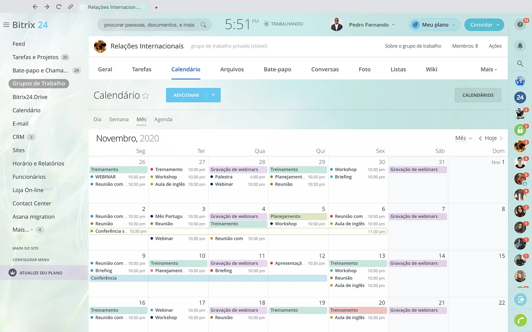 Organize reuniões e eventos, convide os membros da sua equipe e usuários externos, agende compromissos e planeje seu dia: tudo com as ferramentas de colaboração do calendário do Bitrix24.