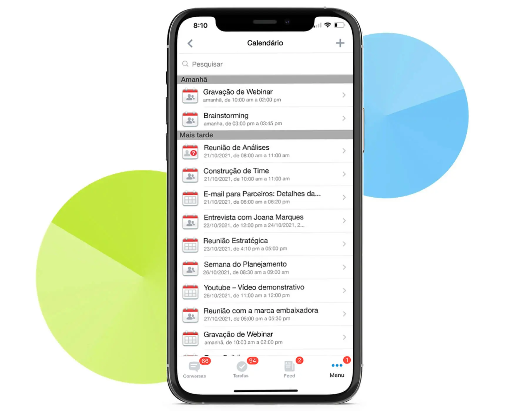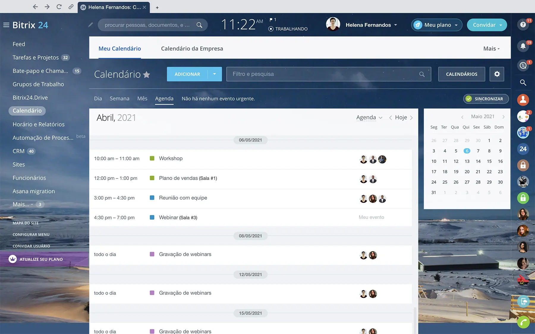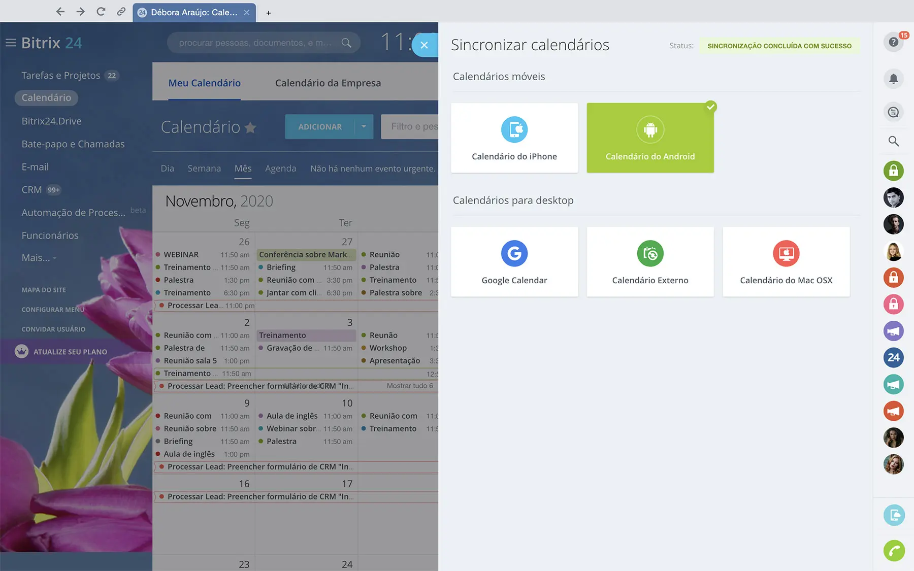 Planeje seu dia, organize o trabalho, agende reuniões com seus colegas e usuários externos, gerencie atividades diárias, semanais e mensais. Tudo isso é feito facilmente com o Bitrix24.