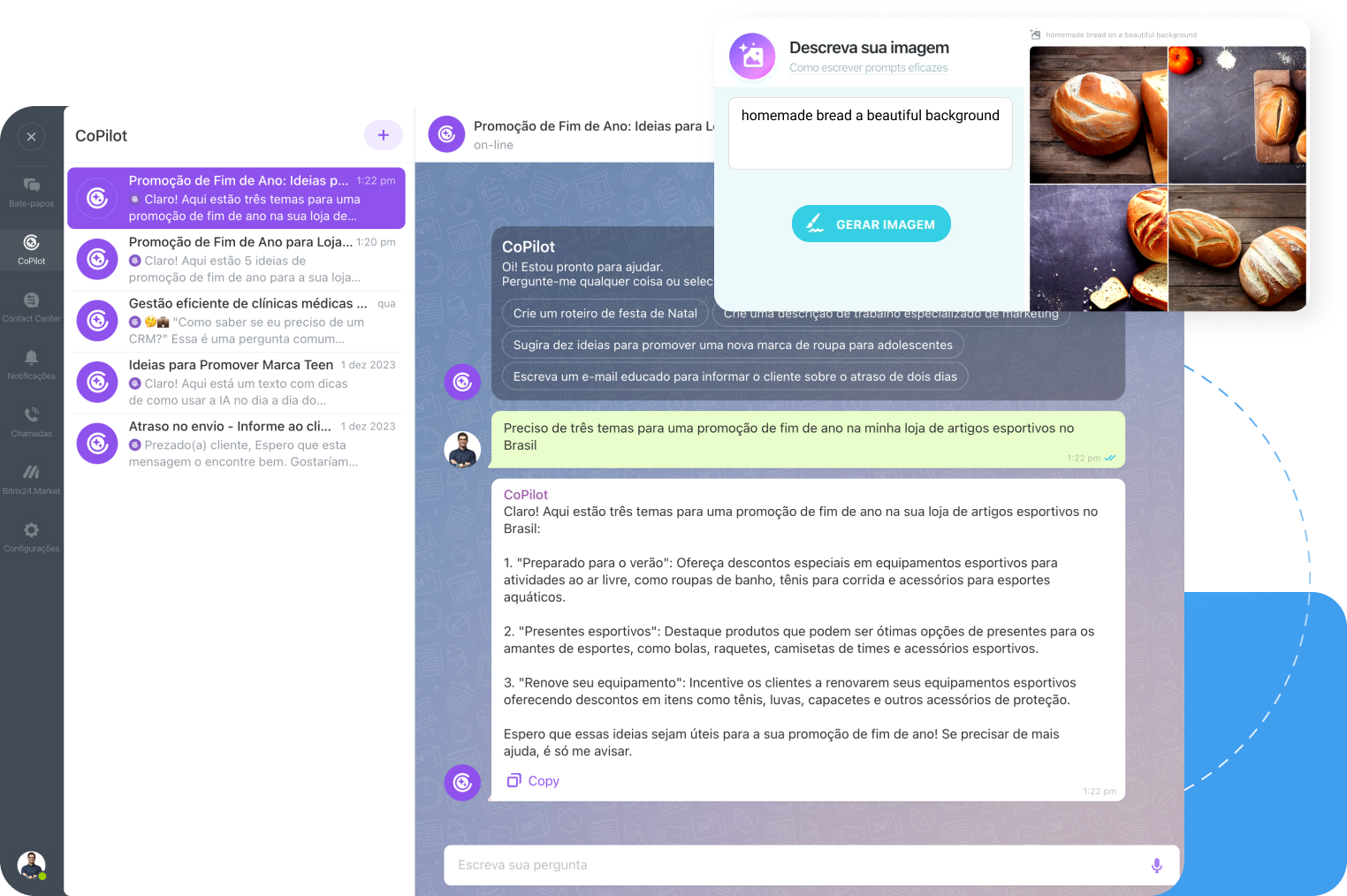 Nosso assistente de IA, CoPilot, vai além da simples automação. Ele ajuda sua equipe a fazer brainstorming, escrever e gerar ideias, além de analisar reuniões e sugerir melhorias práticas. Seja elaborando políticas de RH, preparando relatórios ou aprimorando a comunicação da equipe, o CoPilot economiza tempo e agrega inteligência às tarefas diárias.