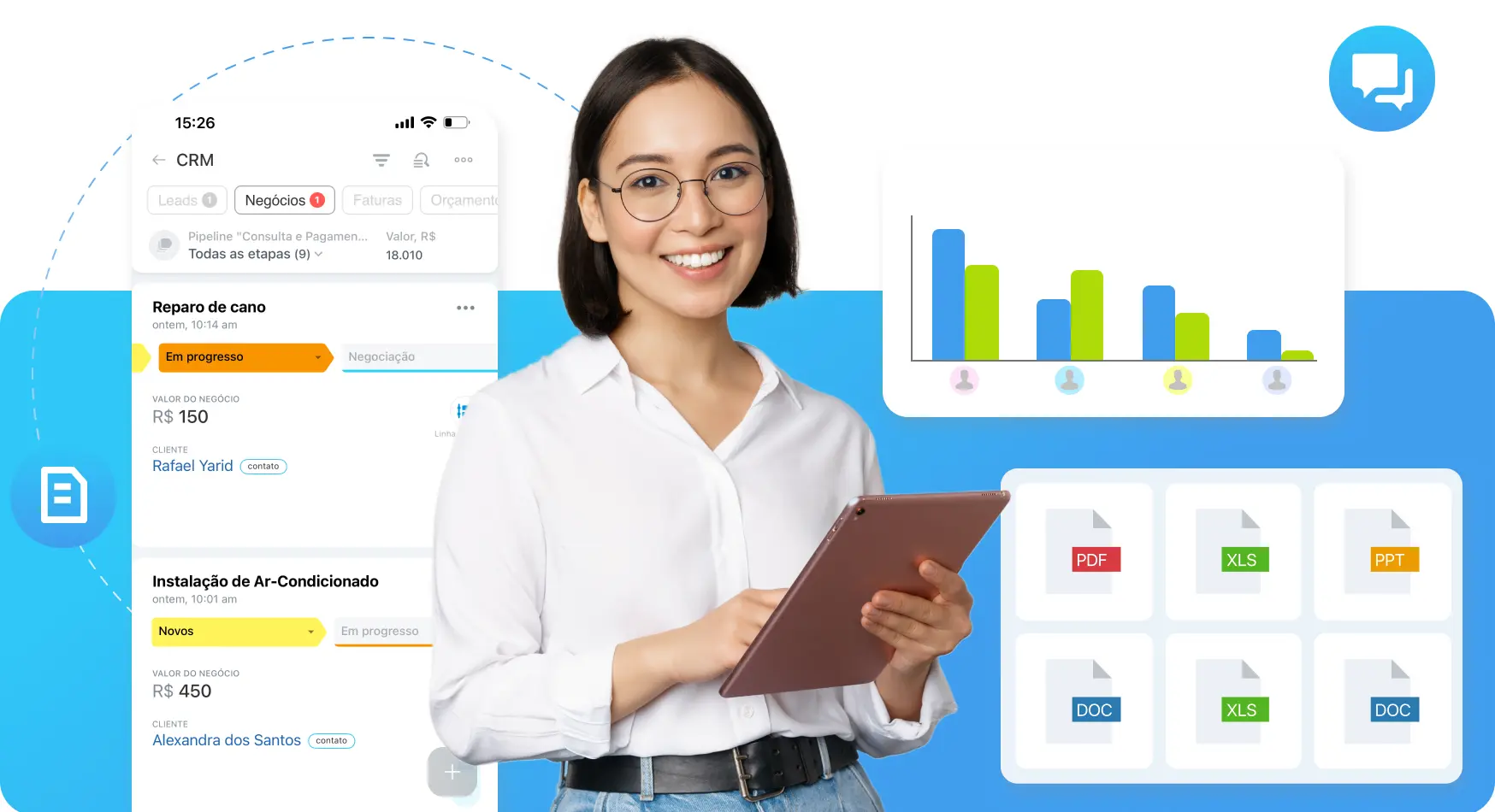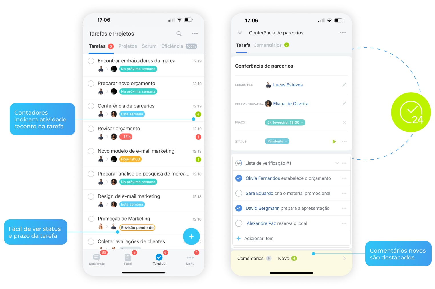 Defina tarefas, gerencie prazos, receba relatórios, acompanhe KPIs e execute projetos de onde você estiver.