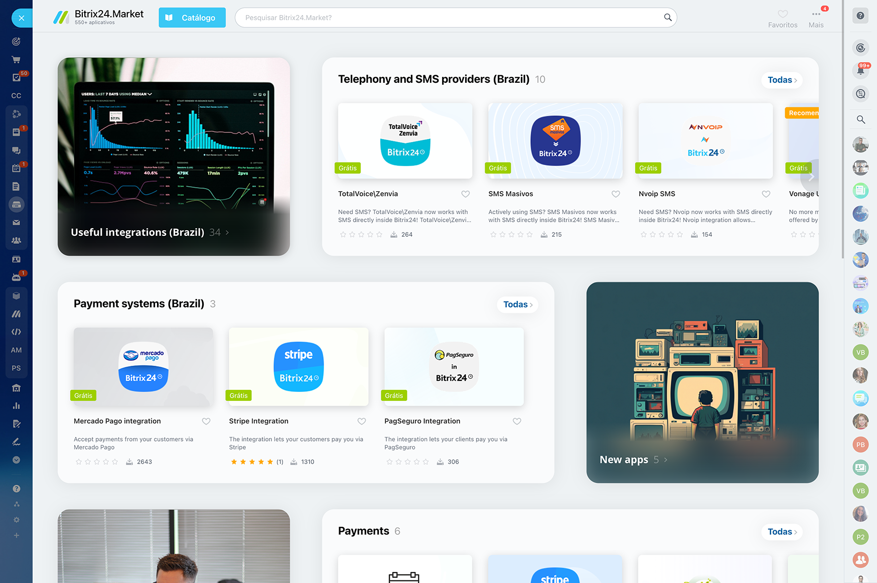 O Bitrix24 Market oferece centenas de aplicativos úteis, complementos, soluções e integrações de API personalizadas para o seu Bitrix24, melhorando a funcionalidade e o desempenho.
