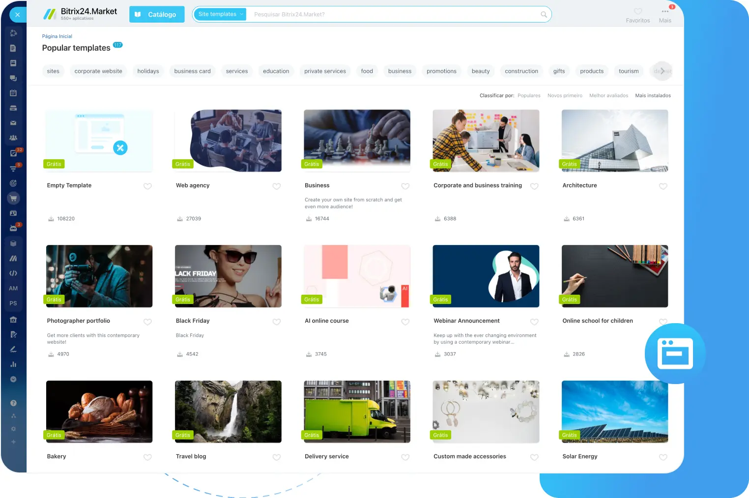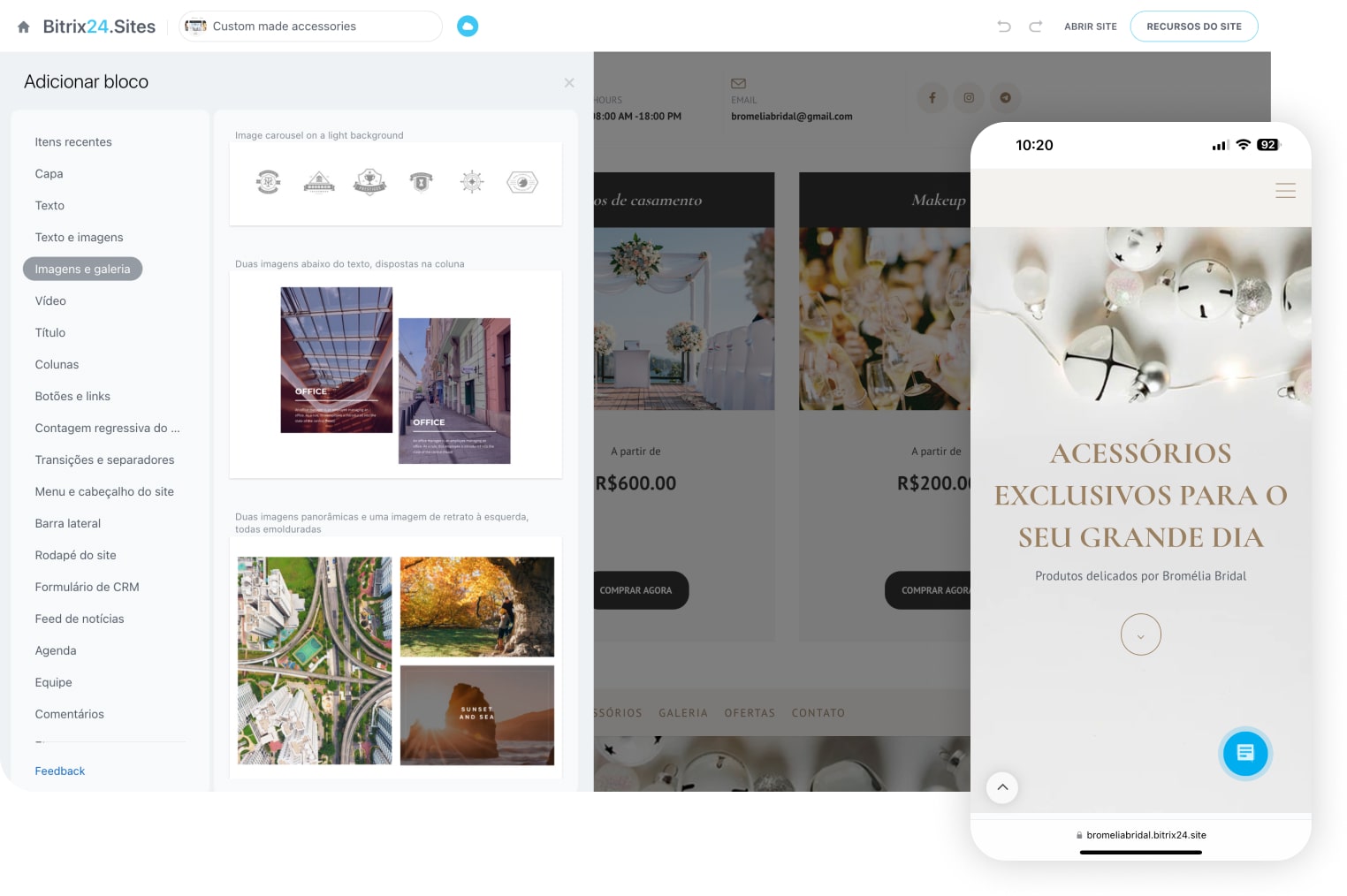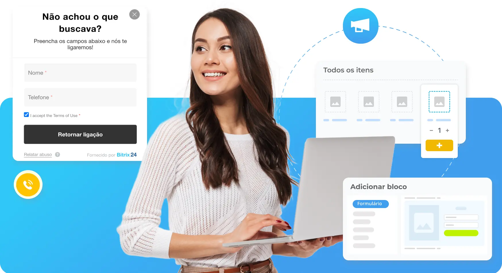 Use o criador de sites intuitivo e sem código para criar lindos sites, páginas de destino ou lojas on-line, totalmente integradas ao Bitrix24 CRM e às ferramentas de marketing on-line.