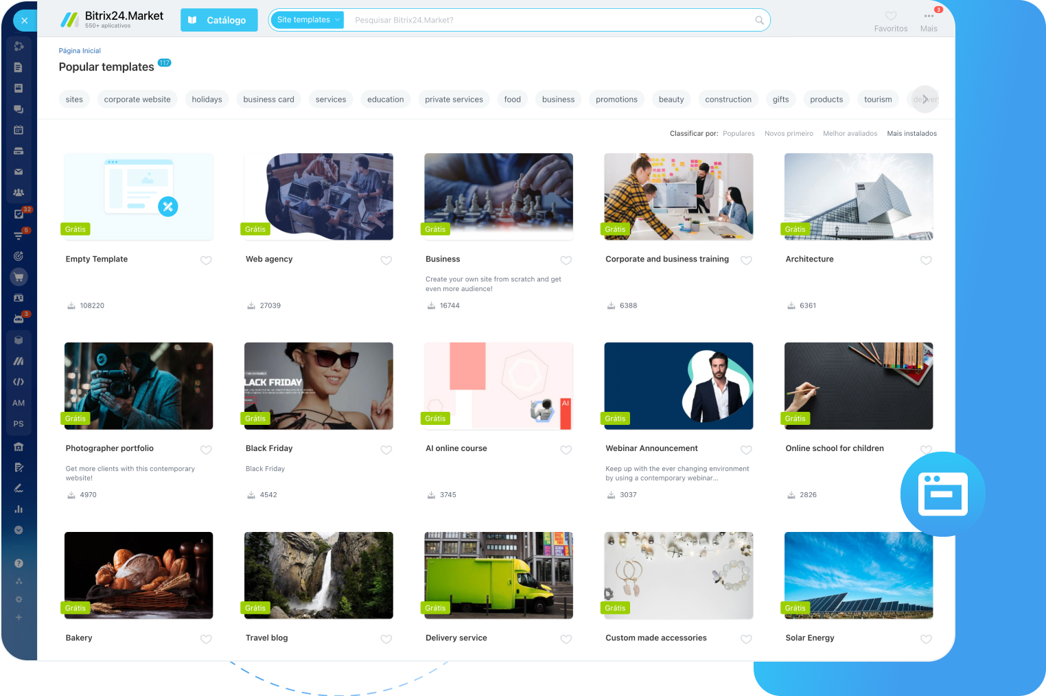 Confira os vários componentes e ferramentas que integram Sites e lojas do Bitrix24. Integrados e interligados, todos trabalham como parte de um único ecossistema.