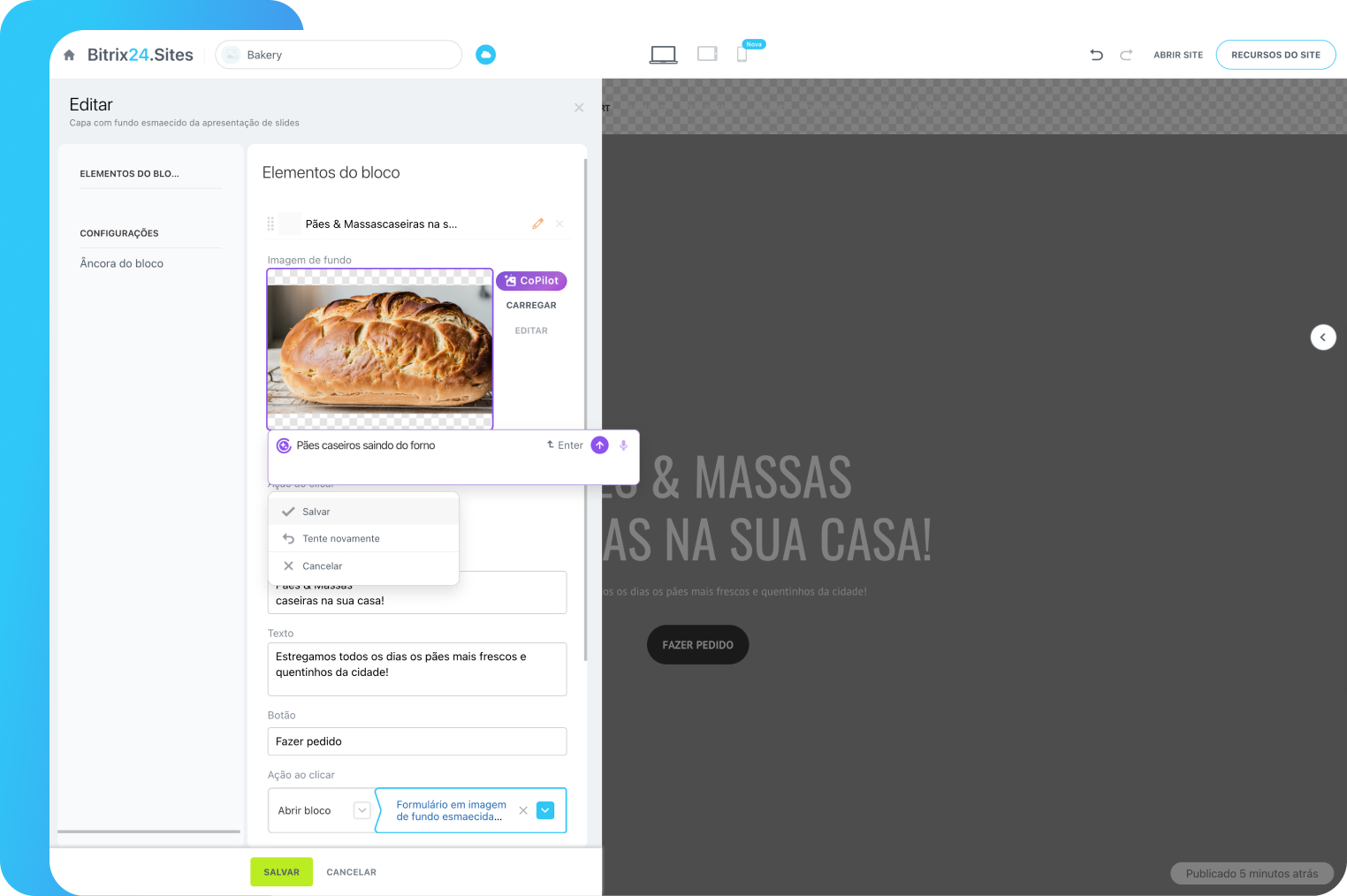 Use nosso assistente de IA CoPilot para gerar sites e páginas de destino prontos em questão de minutos. Com base no seu prompt, o CoPilot criará um design apropriado, copy, imagens e formulários web, que você pode ajustar mais tarde, se necessário.