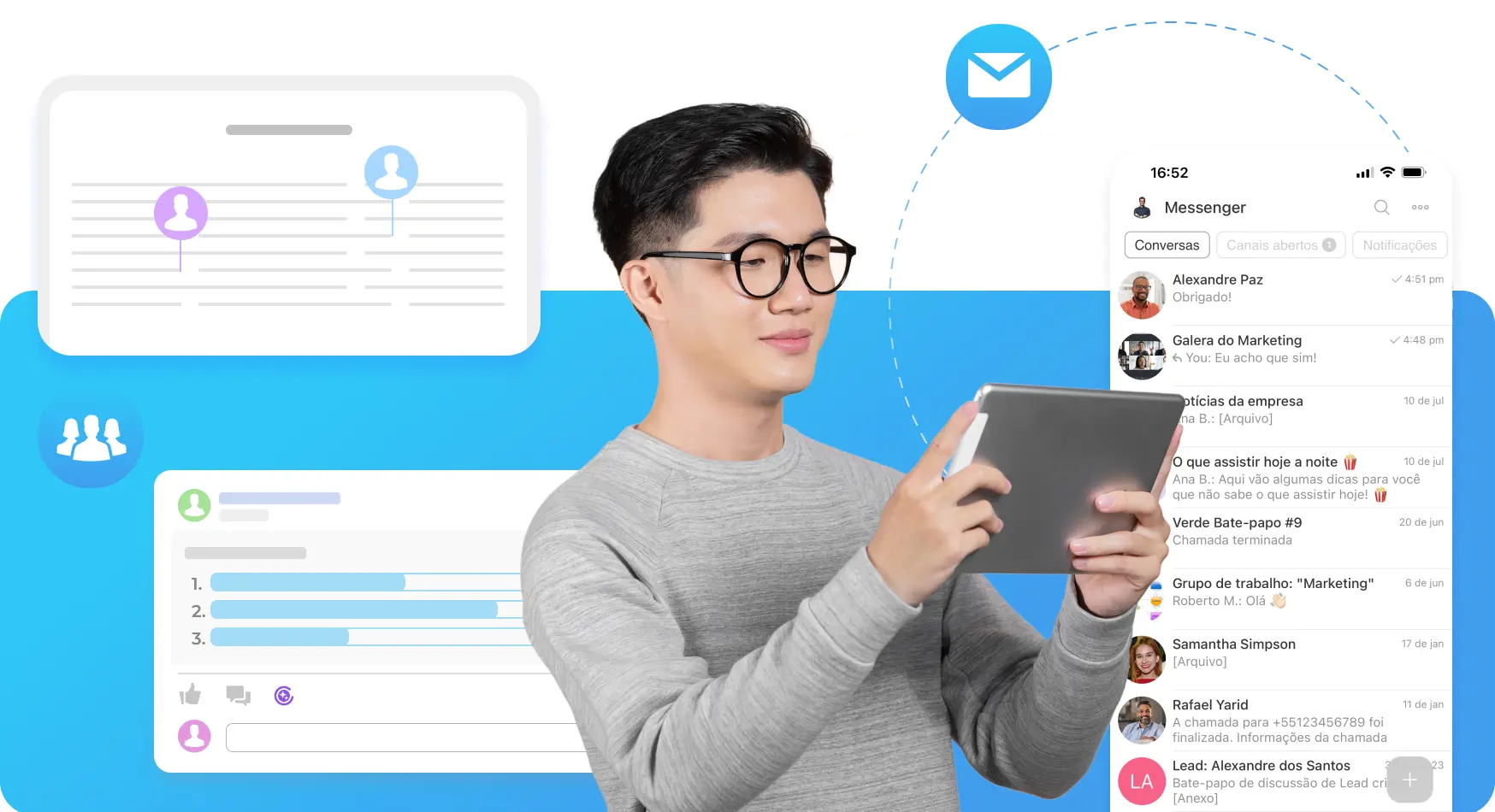 Integrações com todos os messengers mais usados (incluindo WhatsApp, Facebook e Instagram) para ajudar você a vender mais.
